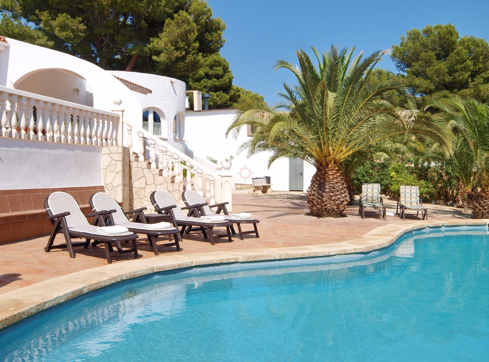 Das Anwesen befindet sich im Osten, um private Gärten mit einem fantastischen Poolbereich mit reichlich Sonnenterrasse und mediterranen Pflanzen zu bewahren. Mit richtiger Südausrichtung genießt das Anwesen den ganzen Tag Sonne und Sonnenuntergänge der Sierra Bernia. Es gibt Off-Road-Parkplätze für zwei Autos, die über eiserne Tore erreicht werden.