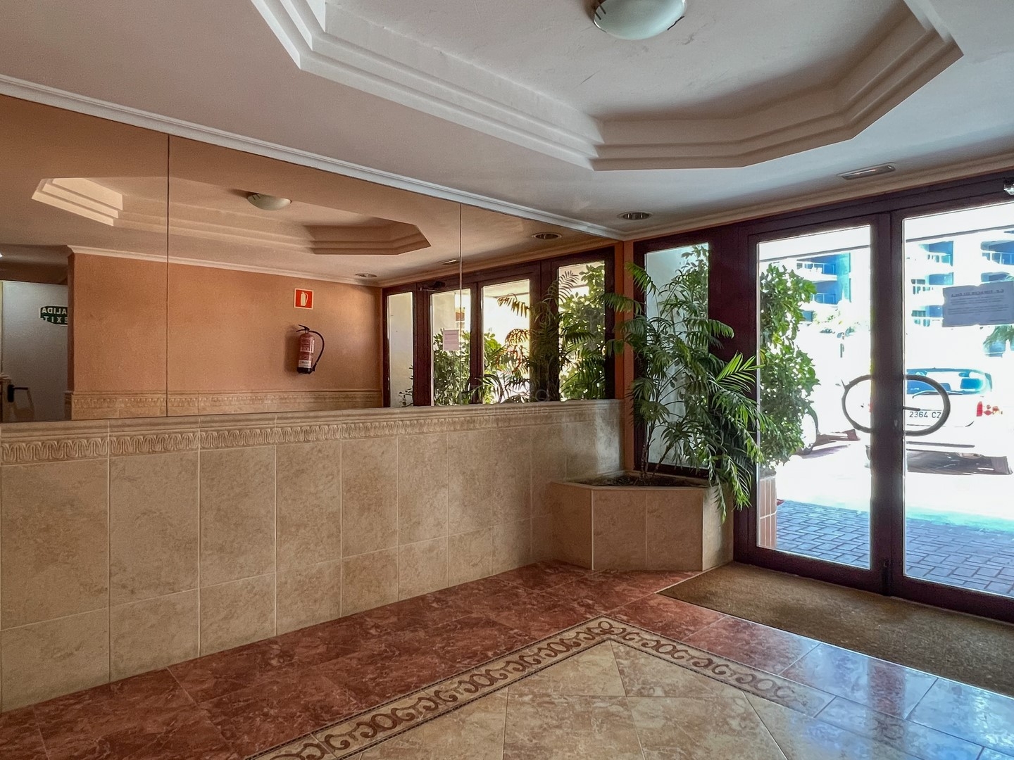 Ein gut ausgestattetes Apartment mit zwei Schlafzimmern und zwei Badezimmern in einem Gebäude in erster Linie des Strandes La Fossa in Calpe. Das Apartmentgebäude verfügt über einladende Gemeinschaftsbereiche mit einem Swimmingpool und einem Tor vom Garten, das direkt zum Strandbereich führt.