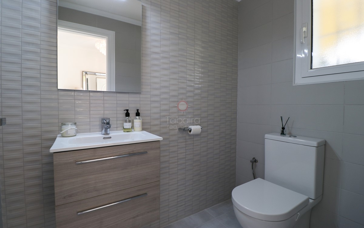 Villa moderna y mejorada de 3 dormitorios con vistas al mar, situada a 1 km de las bahías de Cala Baladrar y Cala Advocat, en la costa de Benissa. Los servicios que incluyen el supermercado de Moraira se encuentran a 1,6 km.