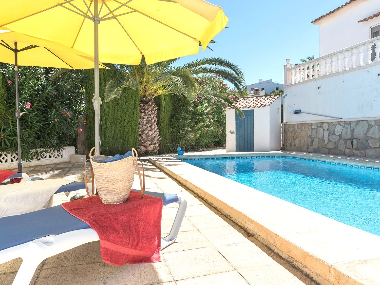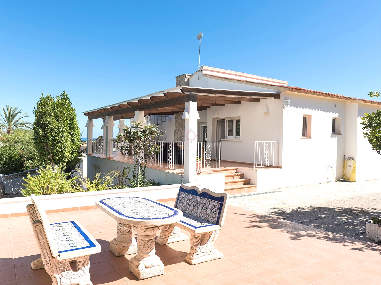 Villa en Moraira con vistas al mar y orientación Sur-este. La vivienda se acomoda en la planta principal y consta de una terraza cubierta con acceso al salón-comedor y a la cocina, dormitorio principal con baño en-suite y armarios empotrados, 2 dormitorios dobles y un baño. Externamente hay varias terrazas, piscina, ducha exterior, barbacoa, jardín, parking y garaje. La propiedad dispone de calefacción a gas y está cerca de servicios. Cons. 195m² y parc. 800m².