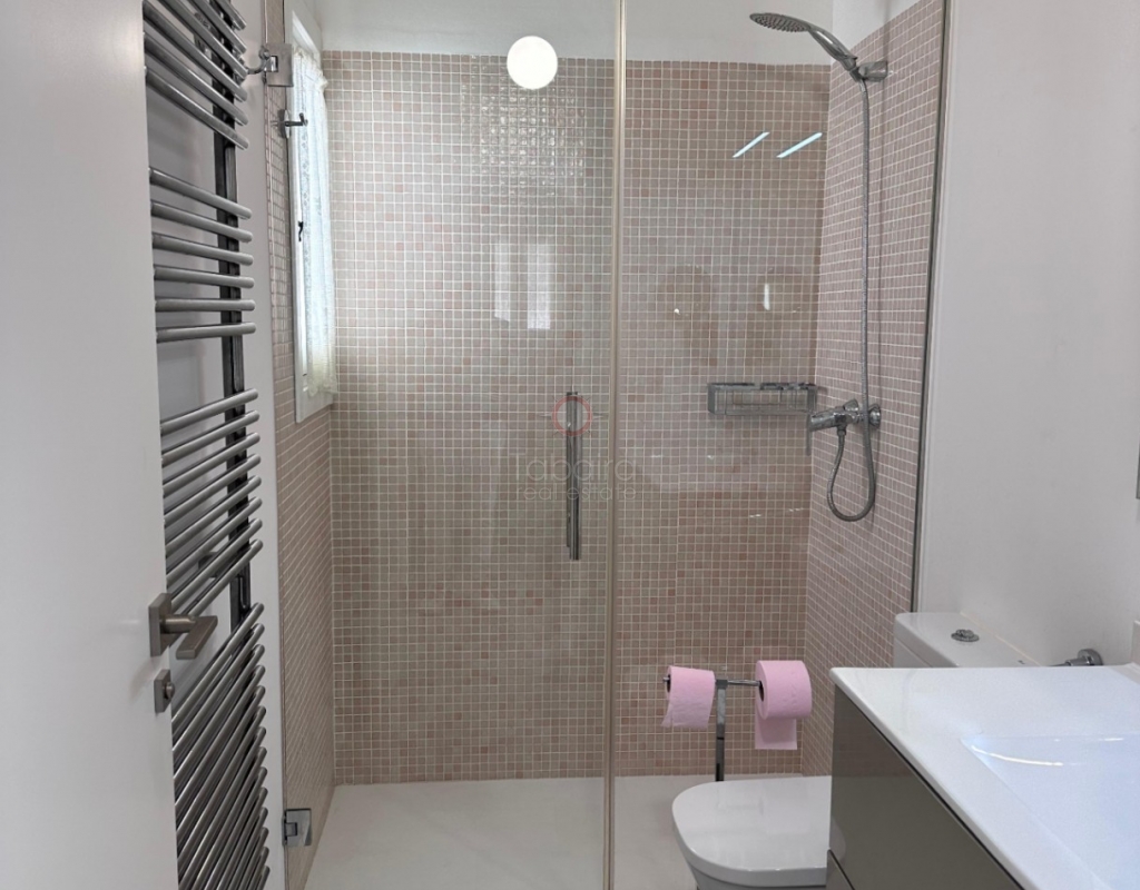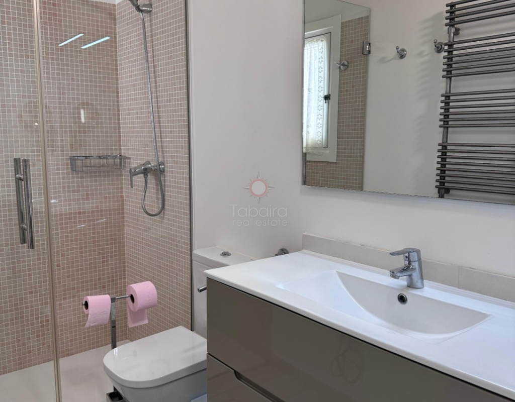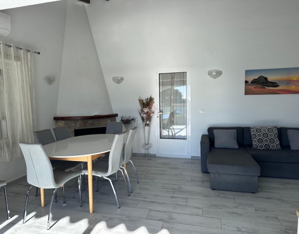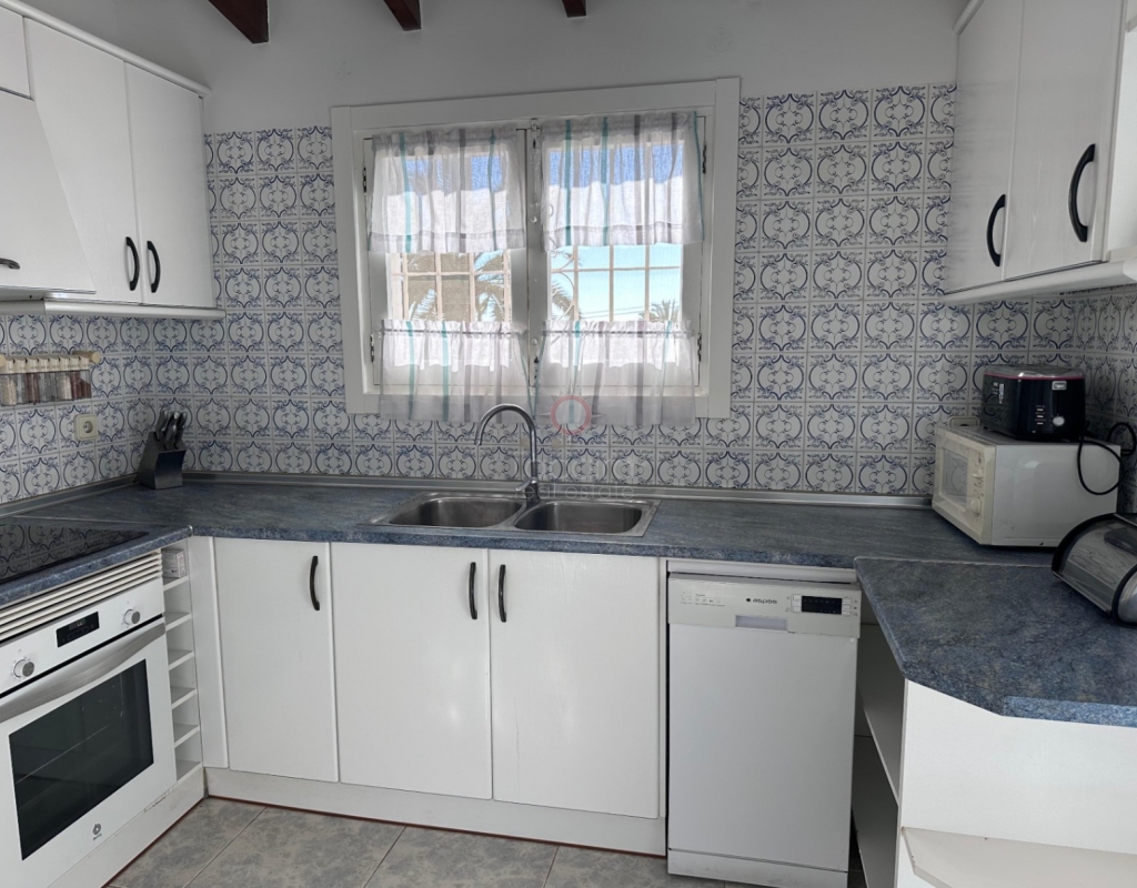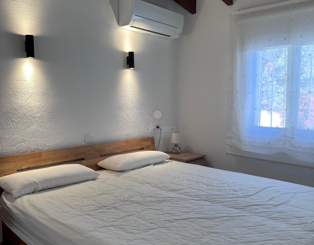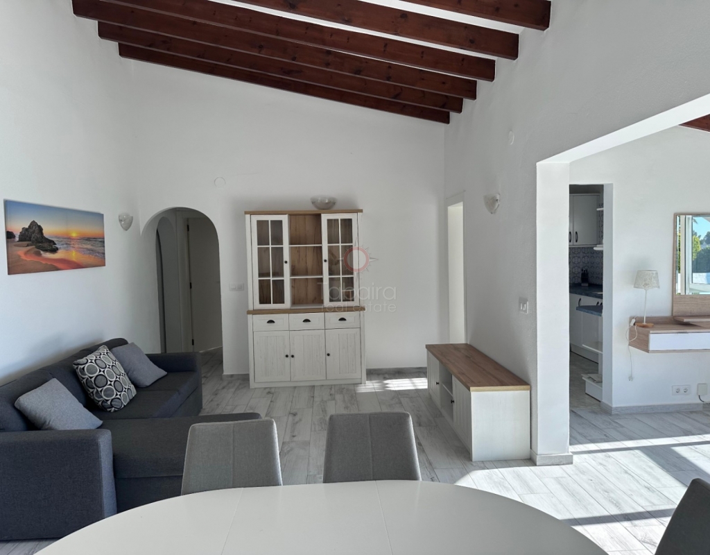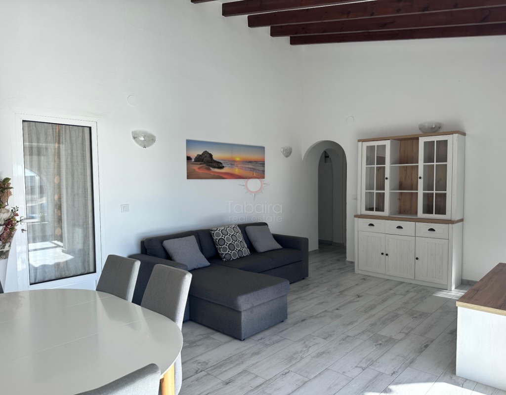 Villa en venta en Moraira, La Sabatera. Villa de una sola planta con 3 dormitorios, piscina privada, vistas al mar, orientación sur y dos garajes en 800 m², a 3 km del mar y del centro. En la tranquila zona de La Sabatera, en Moraira, se encuentra esta villa de una sola planta en una parcela prácticamente llana de 800 m². La vivienda tiene orientación sur, ofrece vistas al mar y se encuentra a solo 3 km del centro y de la costa. Descripción La villa tiene una superficie construida de aproximadamente 180 m² y es totalmente de una sola planta. El salón-comedor con chimenea es luminoso y conecta directamente con la terraza cubierta y la terraza de la piscina. La cocina independiente es funcional y dispone de suficiente espacio de almacenamiento. La vivienda cuenta con tres dormitorios, un cuarto de baño con ducha y un aseo independiente para invitados. Además, hay un lavadero. En el exterior, la parcela ofrece varias terrazas, una piscina y una barbacoa cubierta que linda directamente con la vivienda. Además, la villa dispone de dos garajes independientes. La vivienda está bien construida y bien mantenida, lo que la convierte en una base excelente para una futura modernización. Detalles Parcela de aprox. 800 m²Superficie construida aprox. 180 m²Villa de una sola plantaOrientación surVistas al marPiscina privadaDos garajesAire acondicionadoPor qué visitar esta villa Ubicación tranquilaTodo en una sola plantaBuena relación entre espacio interior y exteriorCerca del mar y del centroEsta villa en venta en Moraira es una agradable vivienda de una sola planta en una ubicación excelente. ¿Desea visitar esta villa en Moraira? Póngase en contacto con uno de nuestros agentes y concierte una cita.