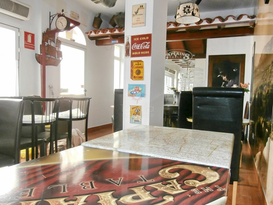 Local commercial à vendre 120m2 entrepôt Quelles sont 60m centre de Moraira. Bar Restaurant avec cuisine entièrement équipée, tables, de la climatisation et chaises de meubles de patio. Prêt à travailler