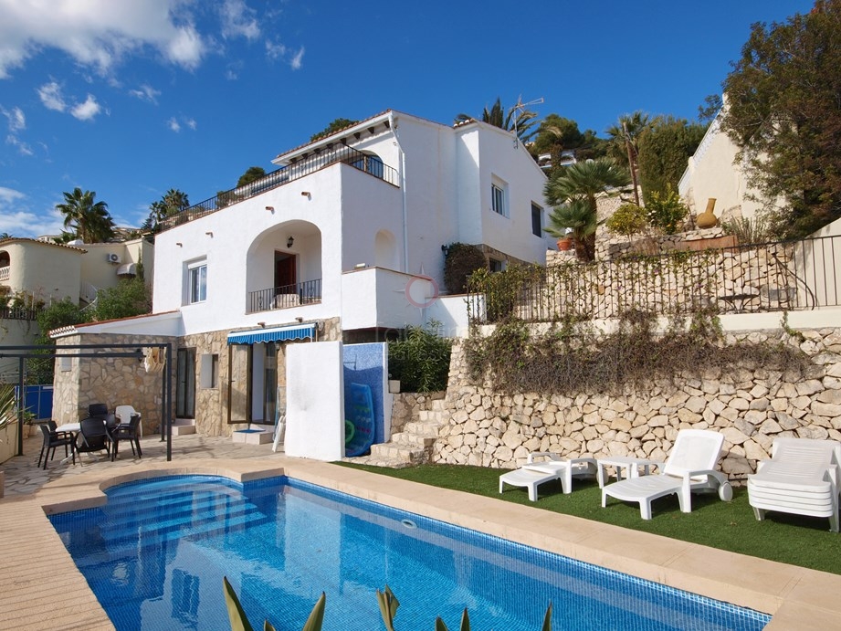 La propriété occupe une position surélevée avec de belles vues panoramiques sur la mer qui se étend de Calpe à Moraira et de la baie de El Portet. Dans le carré parcelle 858 mètres il ya une forme rectangulaire piscine privée, terrasse différents domaines pour profiter de la vue et une grande zone de parking couvert pour 2 ou 3 voitures. Le logement principal est plus de deux niveaux avec escalier intérieur reliant comprenant 5 chambres doubles et trois salles de bains, cuisine, un salon spacieux avec cheminée balcon terrasse. Il ya un grand sous-sol à la propriété qui a été développé dans un appartement de 2 chambres avec 2 salles de bains, salon et une cuisine.