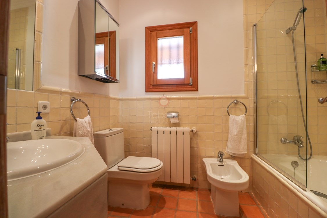 «Une villa de style méditerranéen joliment présentée, avec une vue panoramique sur la mer et à proximité du village et des plages de Moraira.»