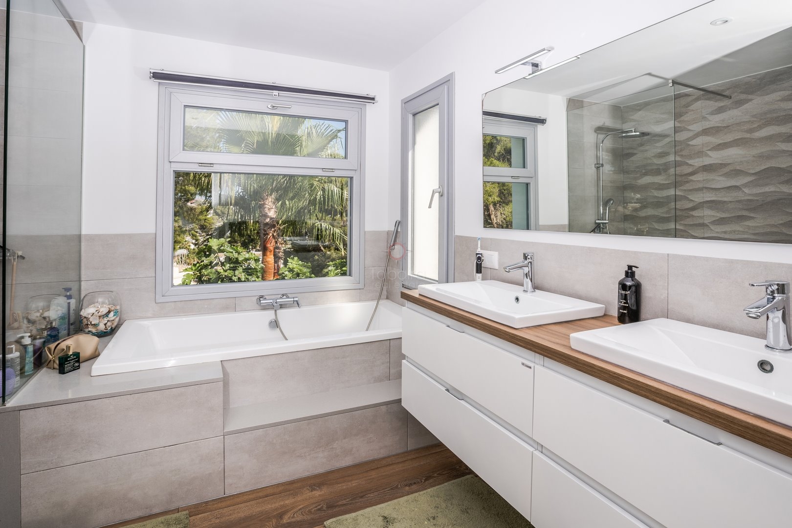 Hedendaagse design villa te koop in Pla del Mar Moraira, op korte loopafstand van de stad en het strand.