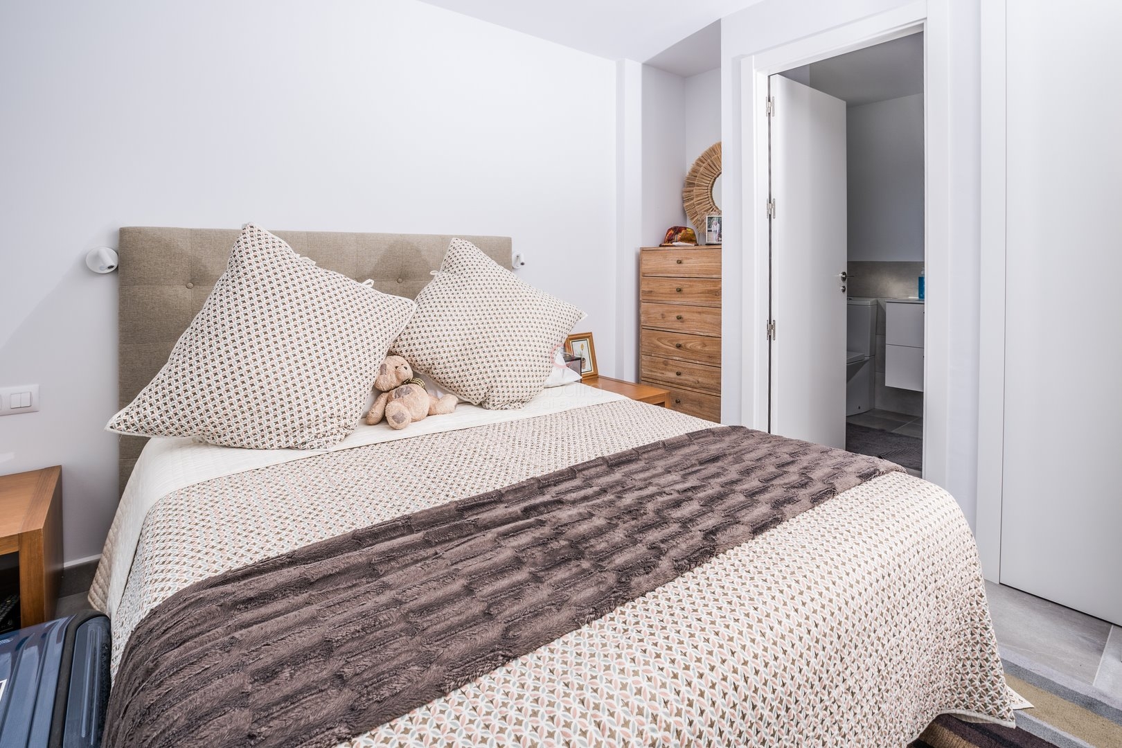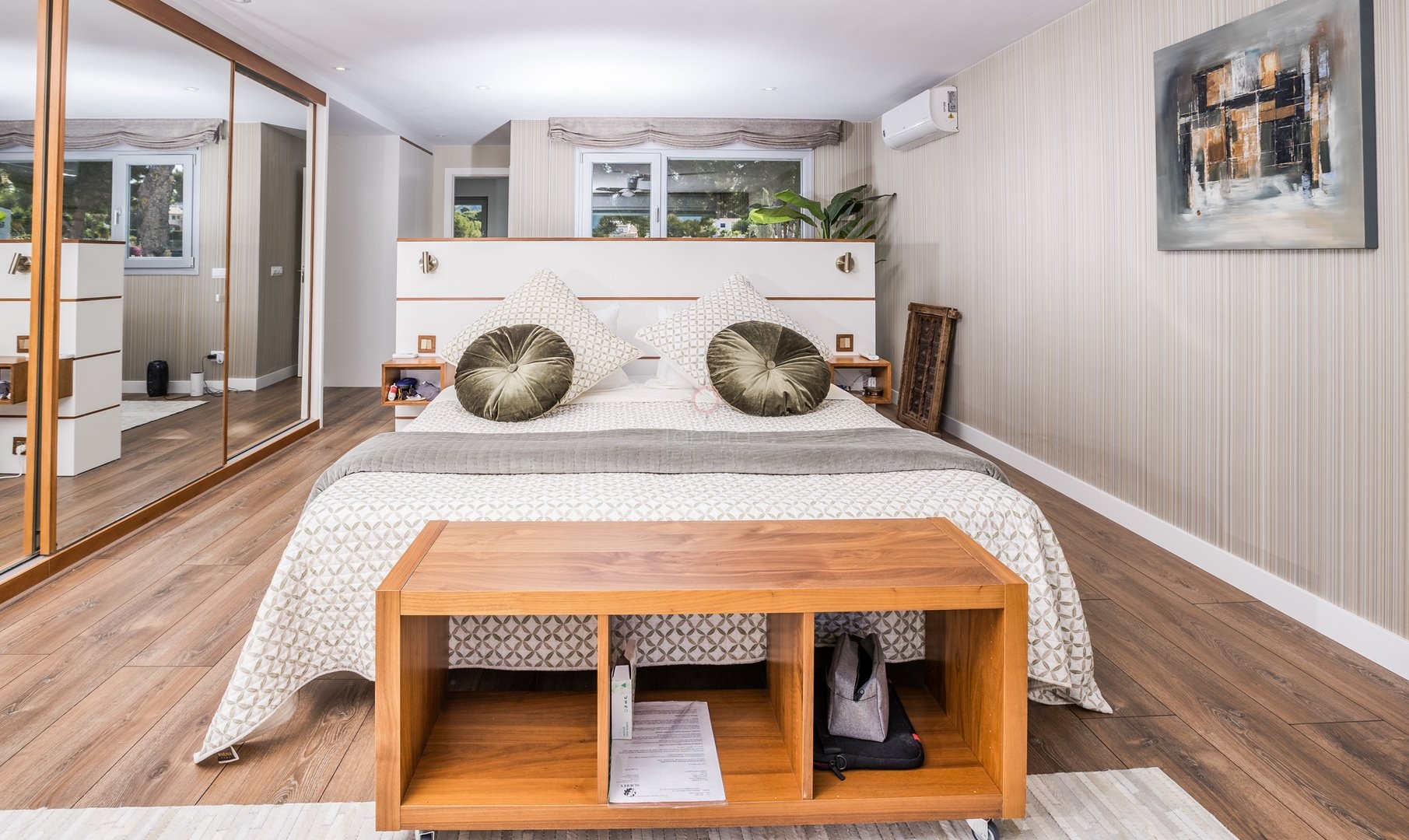 De bovenste verdieping van de villa heeft een ruime hoofdslaapkamersuite met een eigen balkonterras met uitzicht op zee.