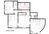 De benedenverdieping is zowel intern als via een eigen ingang vanuit de tuin toegankelijk. Deze verdieping beschikt over een comfortabele woonkamer met toegang tot de tuin, een sociale ruimte met een kleine kitchenette, een tweepersoonsslaapkamer met en-suite badkamer, een gastenbadkamer met zowel een bad als een douche, een wasruimte en een tweede grote multifunctionele ruimte die ideaal is voor gebruik als fitnessruimte, thuiskantoor, bioscoopzaal of extra slaapkamer.