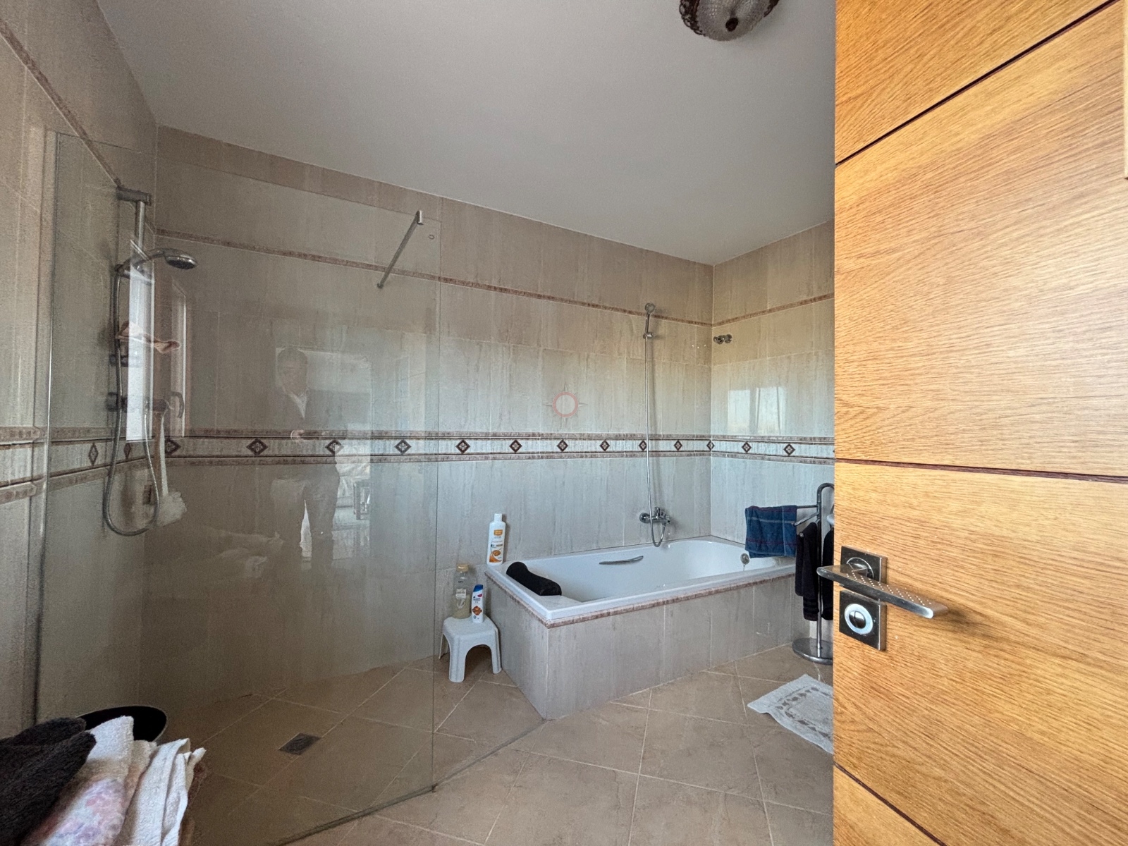 De villa is in 2010 gerenoveerd en uitgebreid en is ontworpen om optimaal te profiteren van licht en uitzicht. De woonverdieping beschikt over een uitzonderlijk ruime open woonkamer, waar het kamerhoge uitzicht op zee centraal staat. De ruimte is doordacht ingedeeld met comfortabele zithoeken en meerdere eetgedeeltes, waaronder een royale eethoek, ideaal voor het ontvangen van familie en vrienden. Op deze verdieping bevinden zich tevens drie slaapkamers en een moderne badkamer met douche.