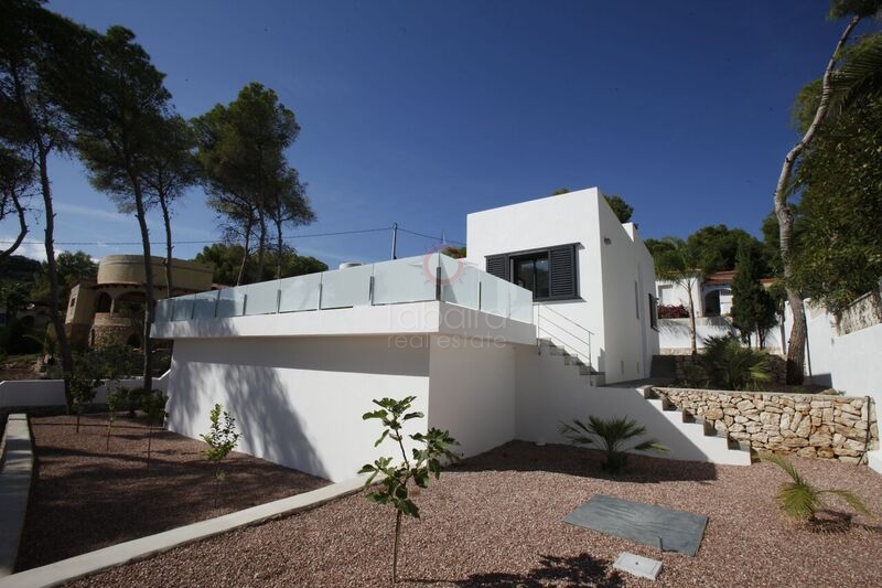 Great price for this modern villa for sale on the coast of Benissa. The property is completely finished with high-quality materials. The accommodation is all on ground level comprising of 3 bedrooms, 2 bathrooms and living room connecting directly with the pool terrace and kitchen and dining area.