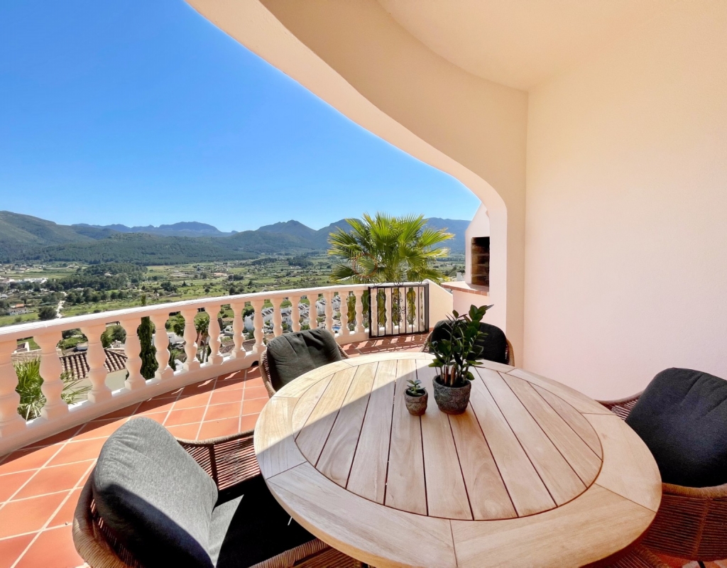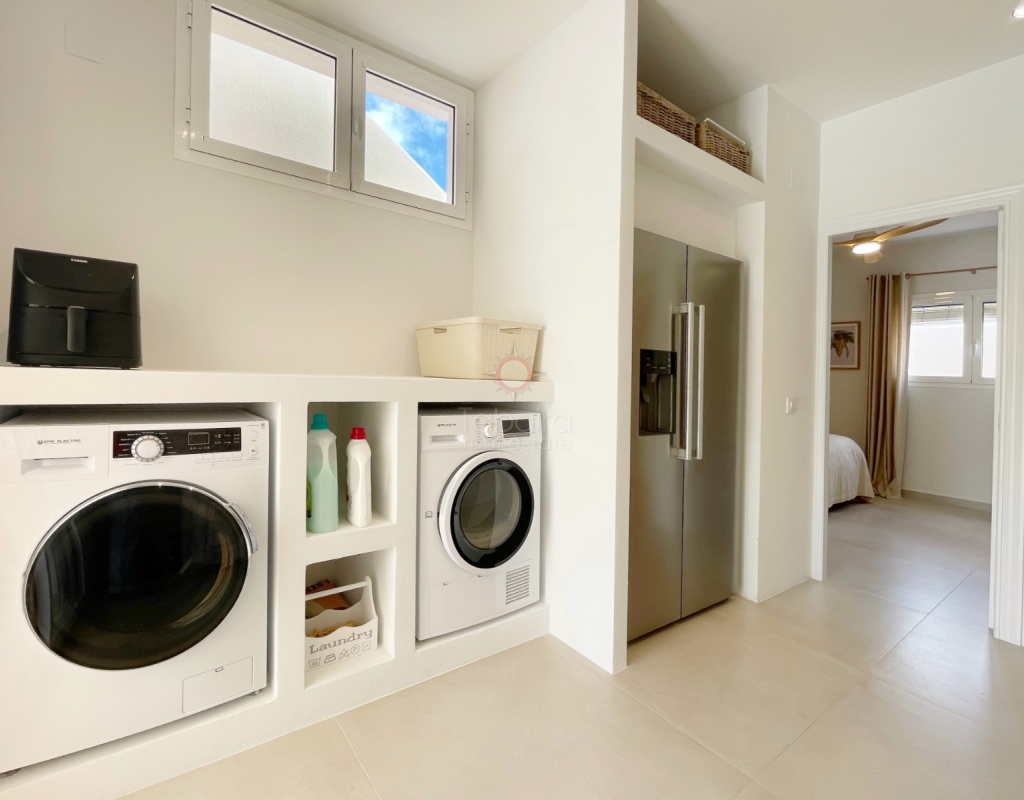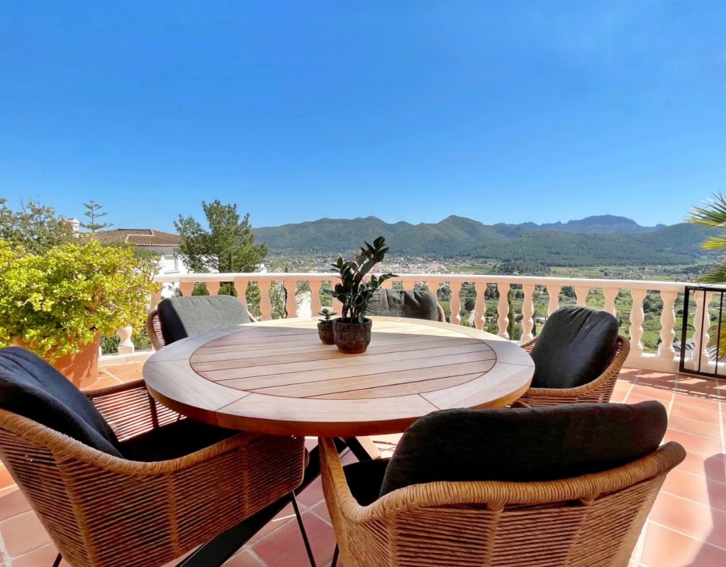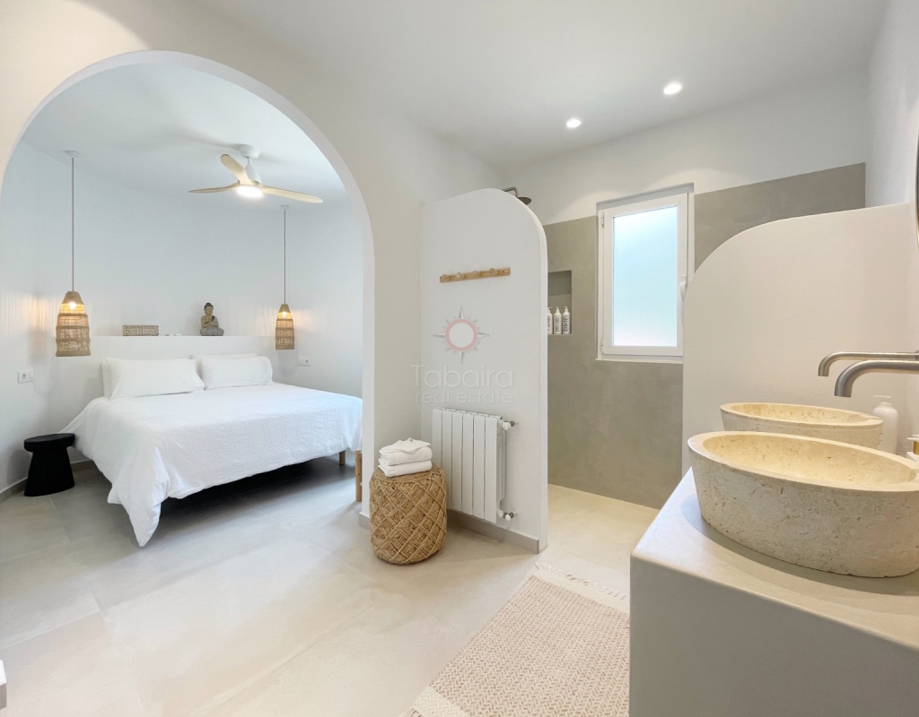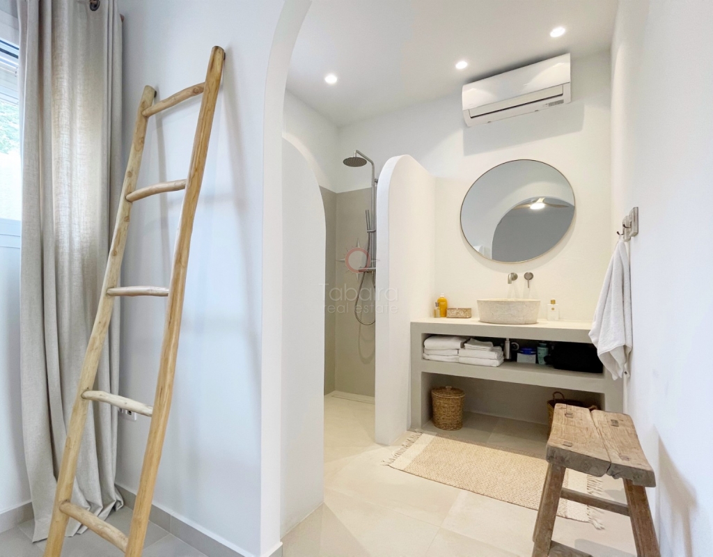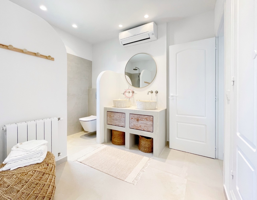 Welcome to this completely ibiza-style renovated villa in Jalon, which underwent a high-quality overhaul in 2023. Really everything has been renewed: from walls, ceilings and floors to bathrooms, painting and installations. The house radiates luxury, comfort and quality and is finished to perfection. The house is equipped with all modern conveniences such as air conditioning in all rooms, mosquito nets, LED lighting (Wever & Ducré and built-in spots) and a new electrical installation with an extensive distribution board. The recent Vaillant Eco Tec Pure central heating boiler (2023) provides efficient heating via radiators.