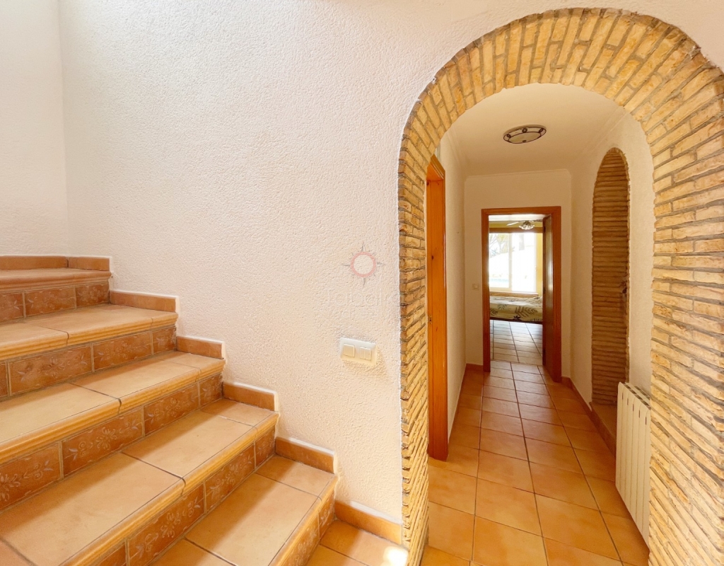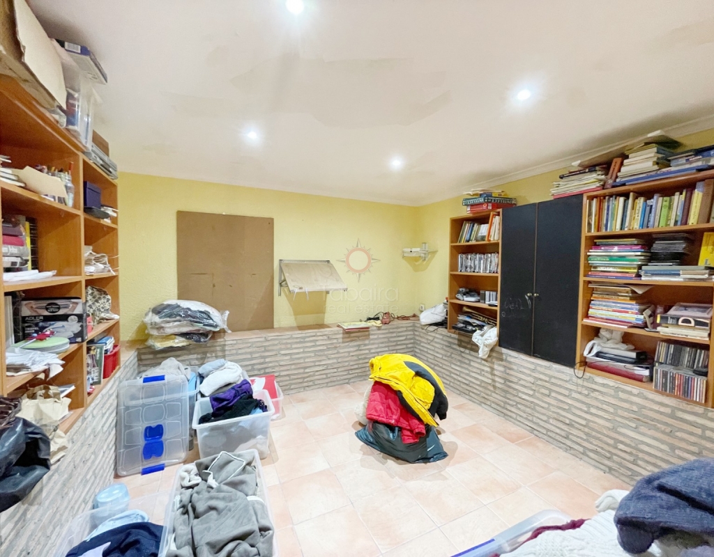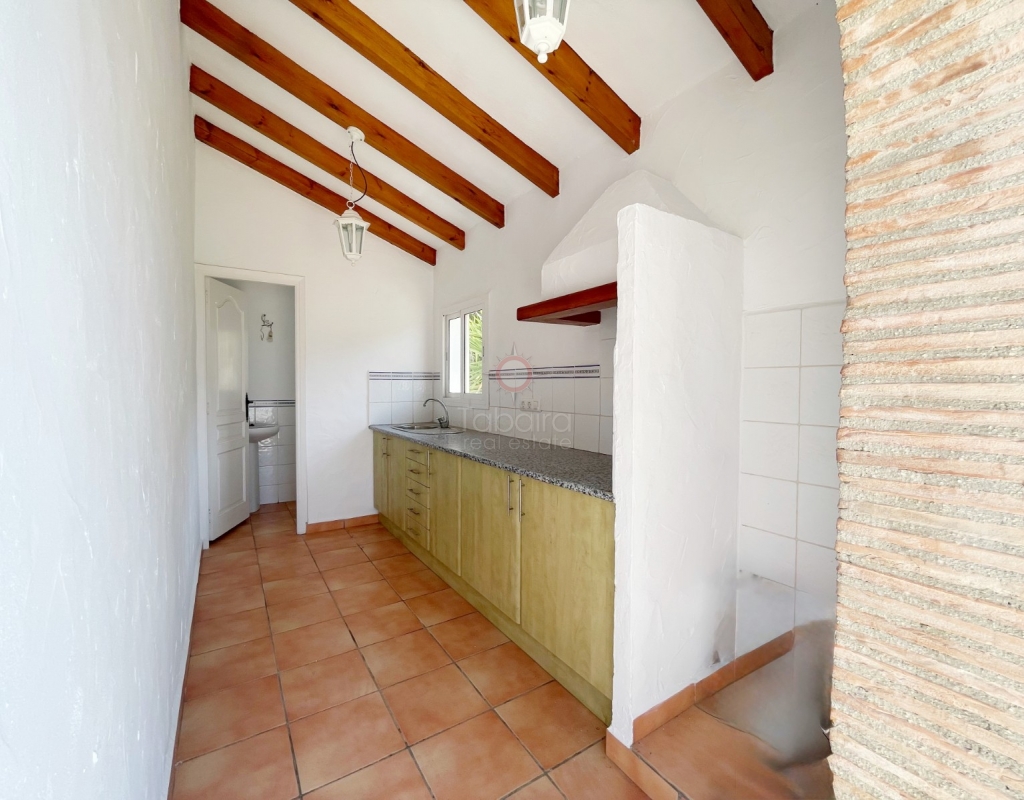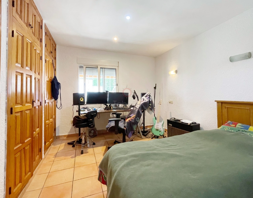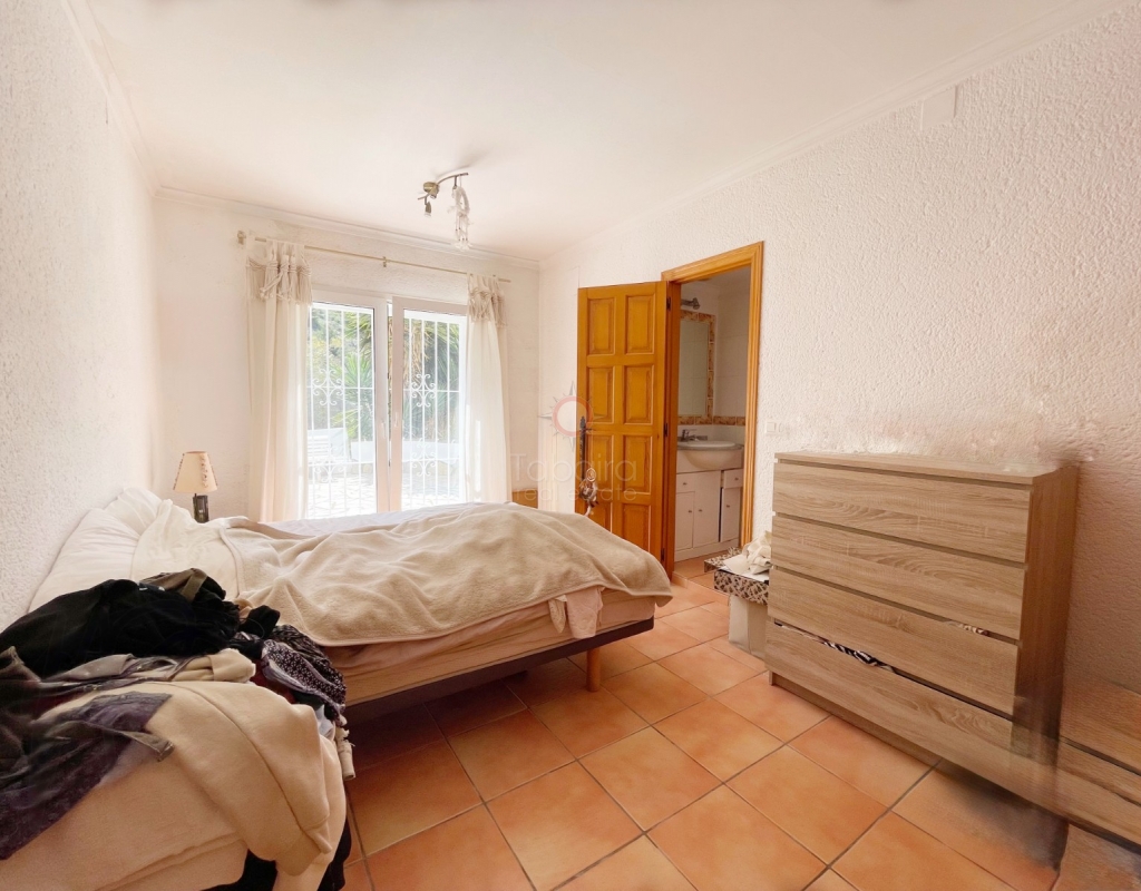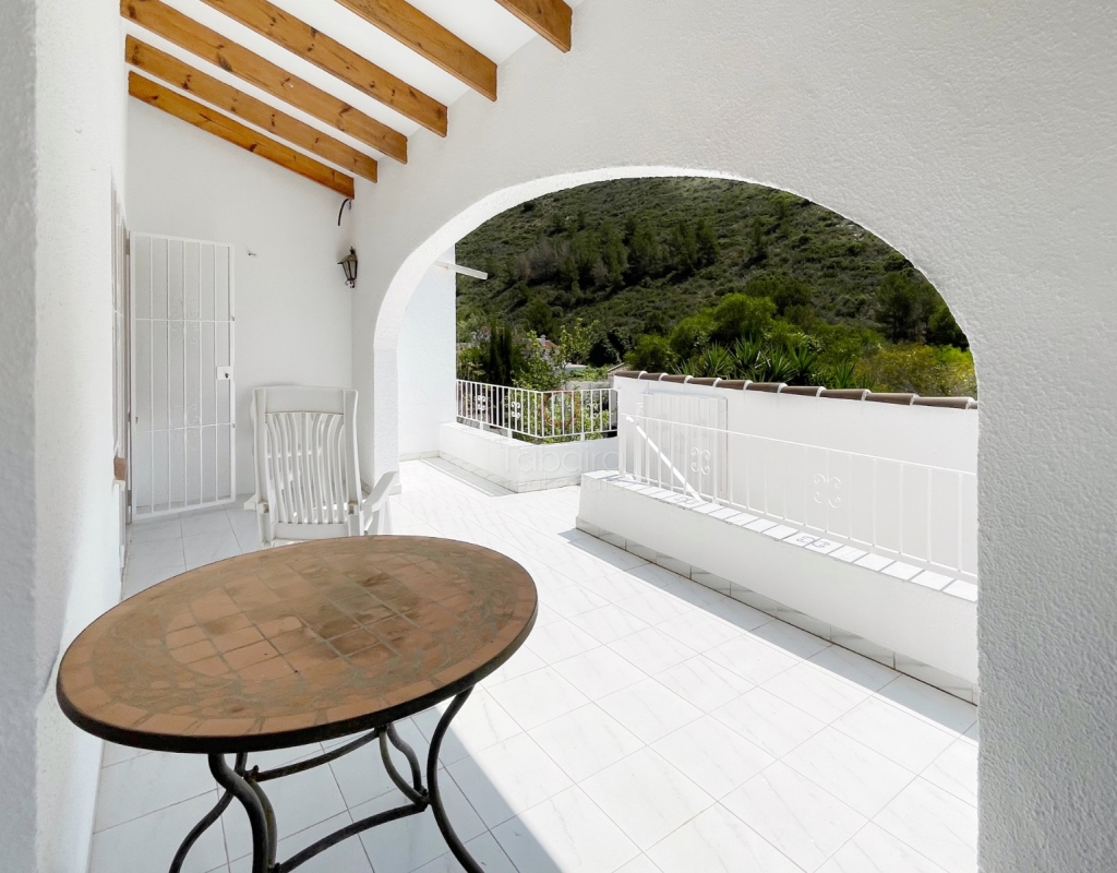 This charming Mediterranean-style villa is located in a quiet and green residential area of Benitachell, a short distance from the sea and amenities. The property is set on a spacious plot of 976 m² and offers 275 m² of living space, spread over two floors. The typical Mediterranean architecture with round arches and attractive Mediterranean garden immediately creates a warm and authentic feeling. The construction is solid and well maintained, but offers plenty of opportunities for modernisation in terms of aesthetics. An excellent opportunity to transform this villa completely to your own taste and style into your dream home on the Costa Blanca North. Description of the property The upper floor consists of a spacious and bright living room with direct access to the spacious naya (covered terrace), from where you can enjoy beautiful views of the green valley and the sea. Adjacent to this is the kitchen. This floor also has three comfortable double bedrooms and two separate bathrooms. A practical laundry room with extra storage space is accessible from the outside.The ground floor is accessible via both an internal staircase and an external staircase. Here you will find two more spacious double bedrooms, a generous family bathroom, a separate guest toilet and two large storage rooms, ideal for storage or possibly to be converted into extra living space. Outside is the 8 x 4 metre private swimming pool, surrounded by a spacious terrace where you can enjoy the sun to the fullest. Right next to it, you will find a covered outdoor kitchen and an additional guest toilet. The garden is landscaped with low-maintenance Mediterranean plants, including some beautiful palm trees and Mediterranean plants, which provide extra atmosphere and privacy. Spread across the plot are several terraces and seating areas, where you can enjoy the sun or shade at any time of the day. There is ample parking on site, including a spacious garage. Features Mature, low-maintenance garden with palm treesSpacious garage and ample parking on siteViews of the sea and a green valley Various possibilities for renovation Don't miss this opportunity and discover the possibilities of this property. Contact us today for more information or to schedule a viewing.