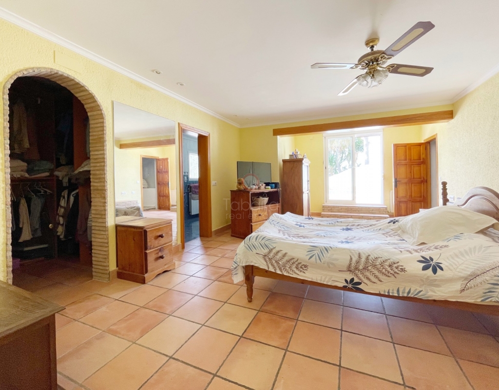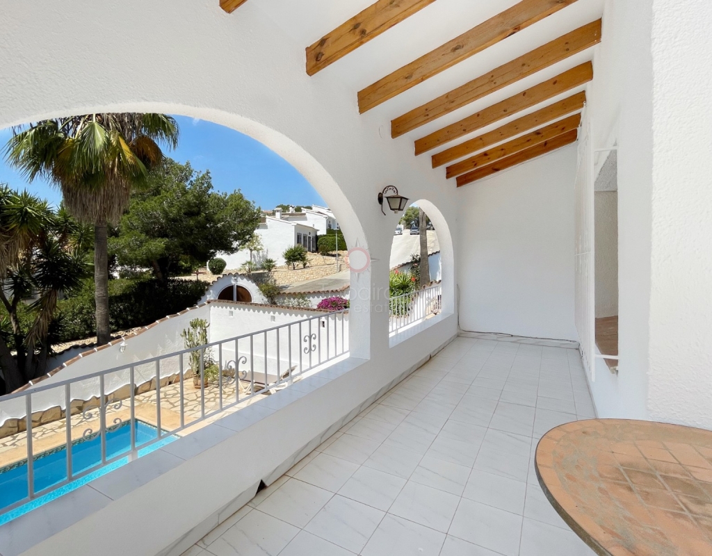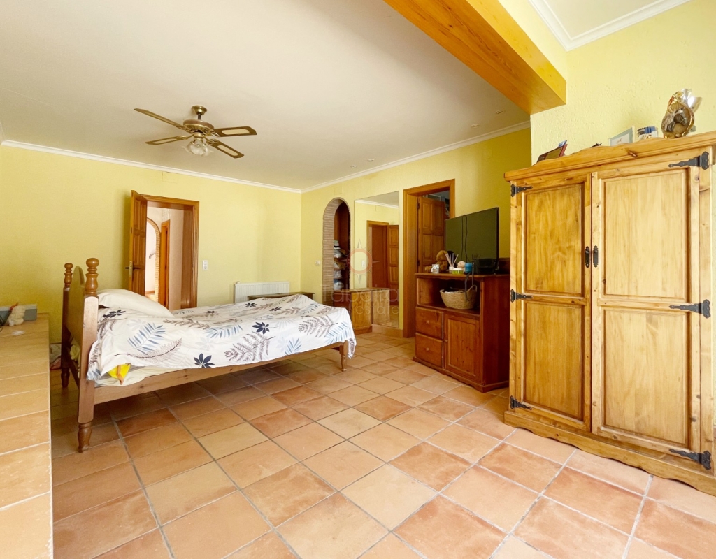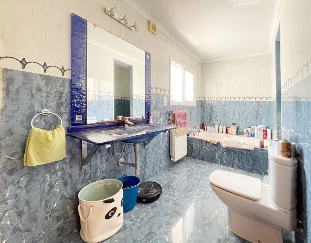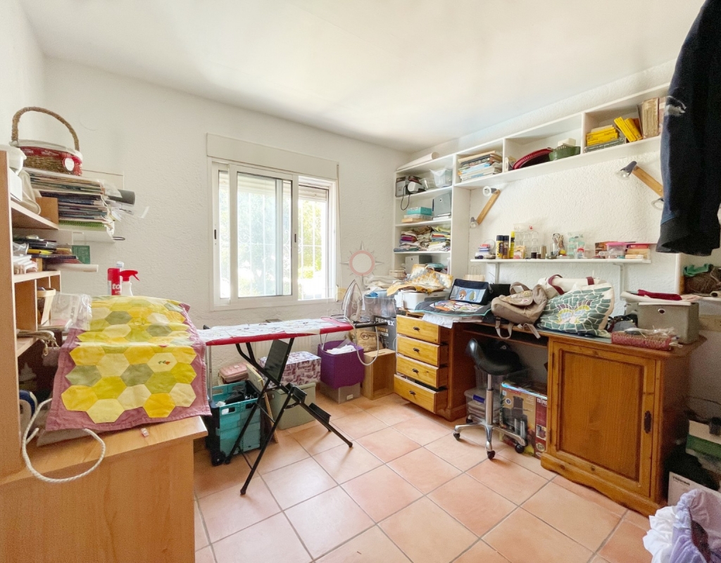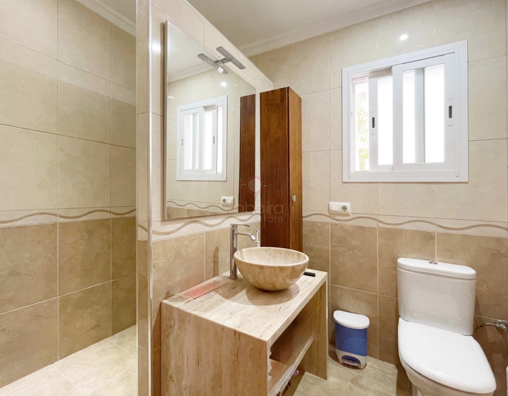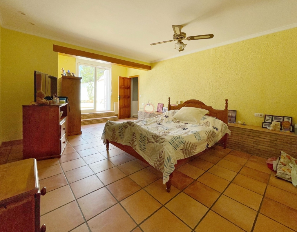 This charming Mediterranean-style villa is located in a quiet and green residential area of Benitachell, a short distance from the sea and amenities. The property is set on a spacious plot of 976 m² and offers 275 m² of living space, spread over two floors. The typical Mediterranean architecture with round arches and attractive Mediterranean garden immediately creates a warm and authentic feeling. The construction is solid and well maintained, but offers plenty of opportunities for modernisation in terms of aesthetics. An excellent opportunity to transform this villa completely to your own taste and style into your dream home on the Costa Blanca North. Description of the property The upper floor consists of a spacious and bright living room with direct access to the spacious naya (covered terrace), from where you can enjoy beautiful views of the green valley and the sea. Adjacent to this is the kitchen. This floor also has three comfortable double bedrooms and two separate bathrooms. A practical laundry room with extra storage space is accessible from the outside.The ground floor is accessible via both an internal staircase and an external staircase. Here you will find two more spacious double bedrooms, a generous family bathroom, a separate guest toilet and two large storage rooms, ideal for storage or possibly to be converted into extra living space. Outside is the 8 x 4 metre private swimming pool, surrounded by a spacious terrace where you can enjoy the sun to the fullest. Right next to it, you will find a covered outdoor kitchen and an additional guest toilet. The garden is landscaped with low-maintenance Mediterranean plants, including some beautiful palm trees and Mediterranean plants, which provide extra atmosphere and privacy. Spread across the plot are several terraces and seating areas, where you can enjoy the sun or shade at any time of the day. There is ample parking on site, including a spacious garage. Features Mature, low-maintenance garden with palm treesSpacious garage and ample parking on siteViews of the sea and a green valley Various possibilities for renovation Don't miss this opportunity and discover the possibilities of this property. Contact us today for more information or to schedule a viewing.