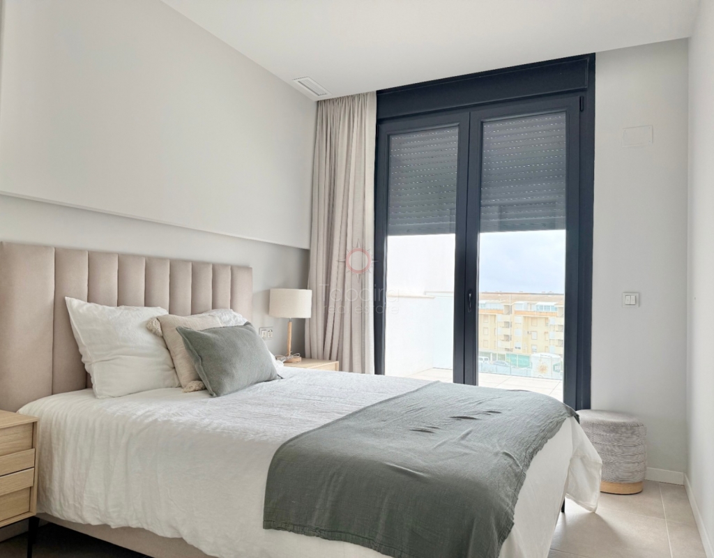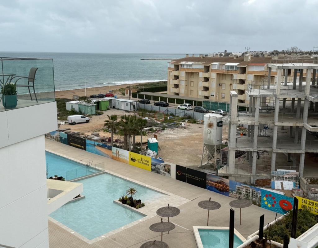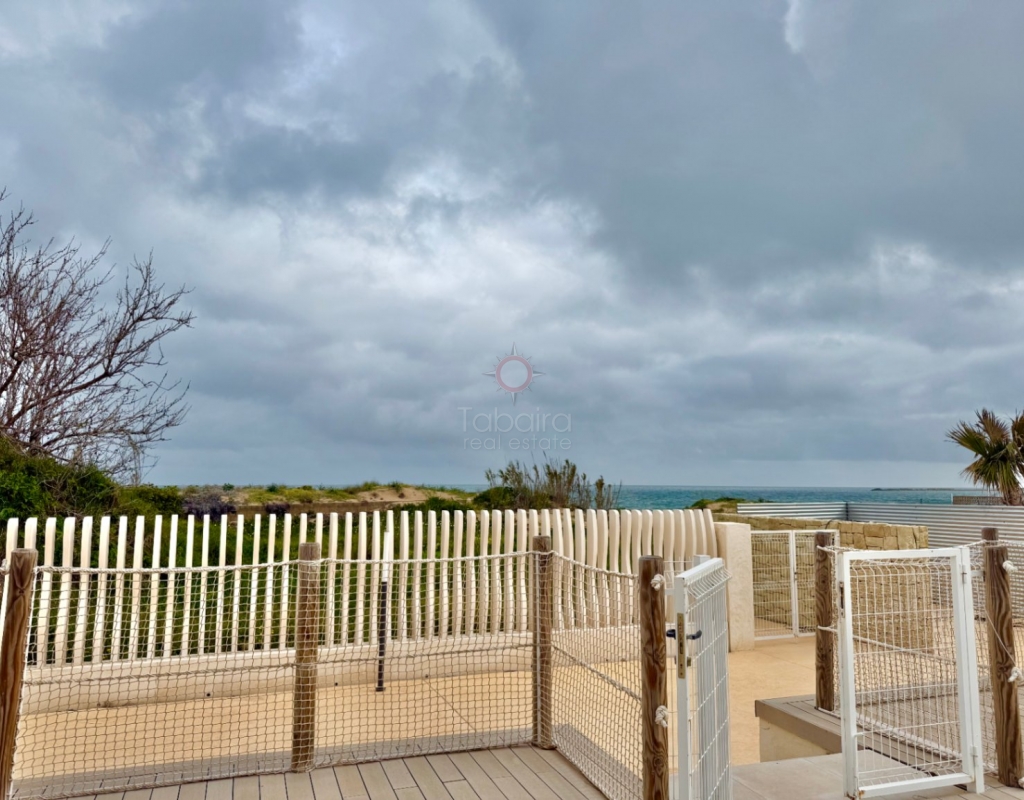 Located in a privileged position on the beachfront, this new and exciting residential project features 32 contemporary apartments spread across several low-rise buildings. Designed to offer comfort, style, and a seaside lifestyle, the complex represents a unique opportunity to enjoy Mediterranean living at its finest.This exclusive duplex penthouse is situated on the top floor and offers two spacious private terraces, three bedrooms, and two bathrooms. Spread over two levels, each floor features a large terrace with uninterrupted views of the sea, perfect for relaxing or entertaining guests.Main features:Privileged location on the frontline, with direct access to the beachCommunity gardens with two large swimming poolsAir conditioning and elevatorModern design with high-quality finishesQuiet surroundings, just 7 km from the center of DéniaWith a completion date set for the end of July 2025, this penthouse offers the perfect balance between tranquility and proximity: steps from the sea, yet just minutes from the vibrant center of Dénia, famous for its gastronomy, boutique shops, tapas street, marina, and festive atmosphere.An exceptional opportunity to acquire a brand-new home in one of the most sought-after coastal areas of the Costa Blanca.