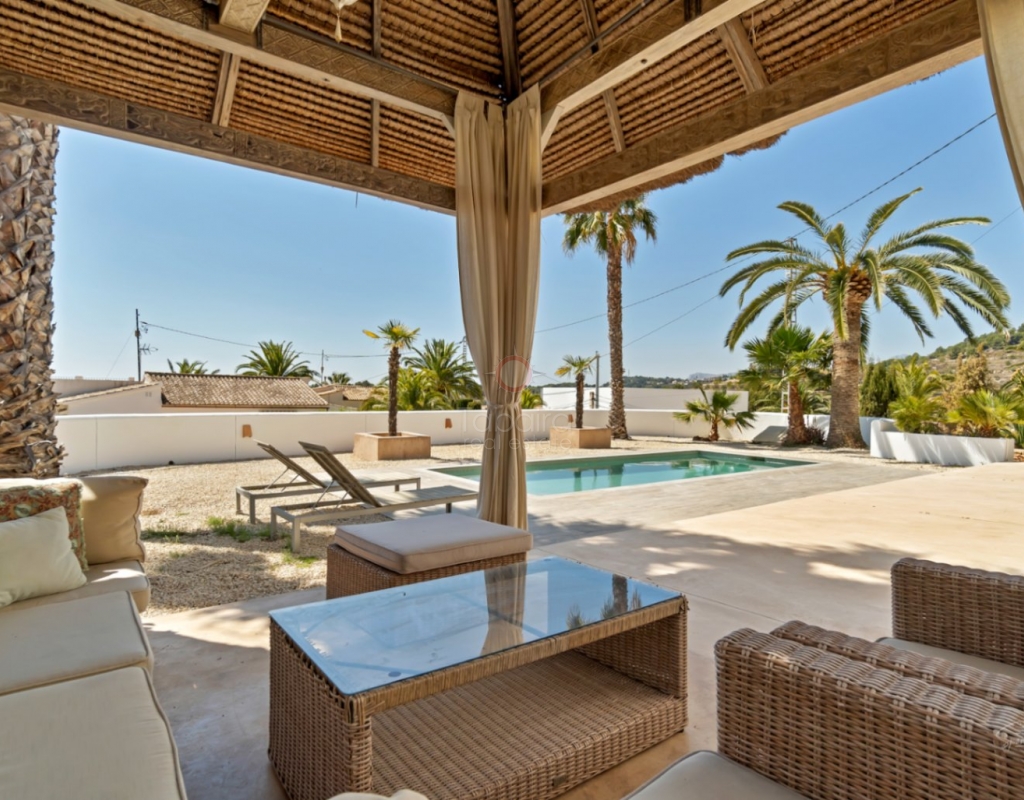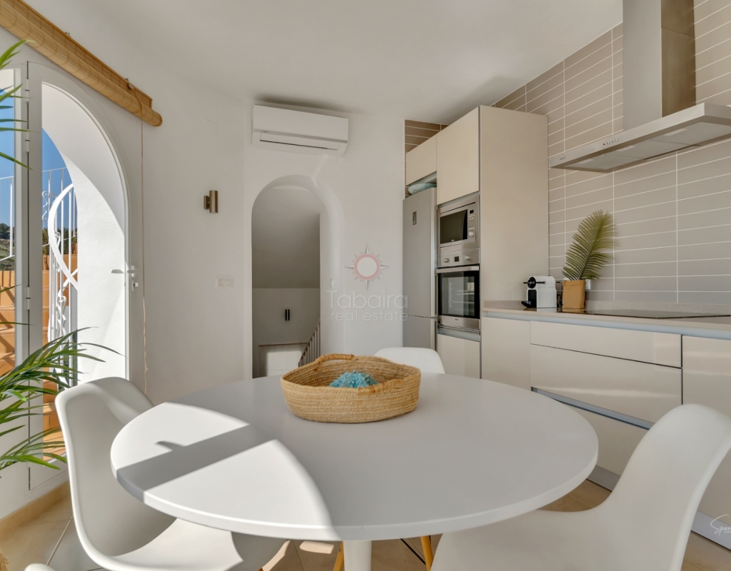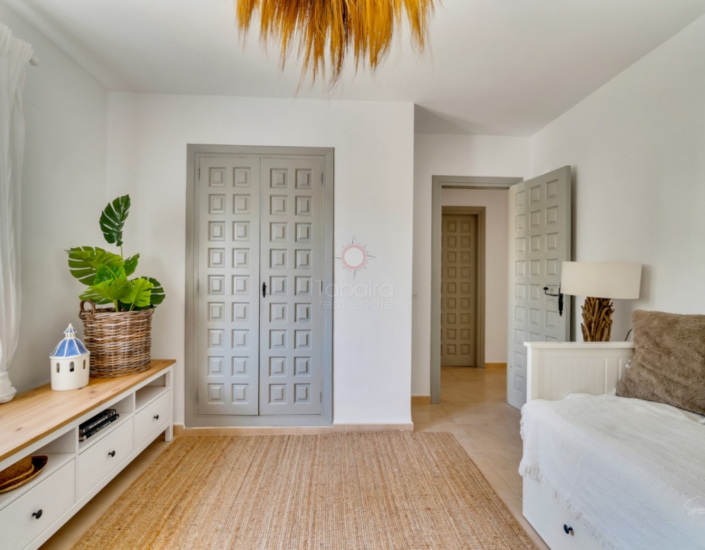 Modern · South Facing · Private Patio with Direct Access to the PoolLocated in a quiet and well-maintained development of only six homes, this beautiful townhouse in Jávea, built in 2019, offers style, comfort, and convenience in an excellent residential area. With a built area of 174 m² and a private plot of 133 m² (of which 80 m² corresponds to a patio), this home is ideal for year-round living or worry-free vacation enjoyment.Main Features:Built in 2019 – contemporary design and modern finishes174 m² built | 133 m² plot (of which 80 m² of private patio)Distributed over 3 floors4 double bedrooms | 3 full bathrooms and a toilet2 private parking spaces – one covered and one outdoorSouth facing – very bright all dayGround Floor:We access a spacious open-plan living-dining room with direct access through glass doors to the large private patio. The independent kitchen, fully equipped with modern appliances, and a full bathroom with shower are also located on this floor.The patio is an ideal outdoor space, featuring a wooden pergola, seating area, large dining table, and barbecue. From here, there is direct access to the communal gardens and pool.First Floor:This floor includes:Two double bedrooms, one with a private balcony and views of MontgóA family bathroom with showerA spacious master bedroom with en-suite bathroom, large built-in wardrobes, and a private terraceSecond Floor:On the top floor, there is a large open bedroom with access to two private terraces facing southeast and west. This floor also includes a toilet, making it ideal as a guest suite, office, or multipurpose room.Amenities and Extras:Ducted air conditioning (cold/heat) in all roomsDouble-glazed windows and mosquito netsBuilt-in wardrobesSmall, quiet community of only 6 homesDirect access to the pool and communal gardensEnergy rating: BLocation:Supermarket: 600 mGym: 500 mOld Town and Market: 750 mClose to schools and public transportXàbia International College: 3 kmLa Grava Beach (Port): 1.7 kmArenal Beach: 2.7 kmCosts:IBI: 240 €/yearTrash: 125 €/yearCommunity fees: 125 €/monthIf you are looking for a modern home, ready to move into in Jávea, with outdoor space, pool access, and within walking distance to all services — this is an excellent option. Contact us today to arrange a viewing.