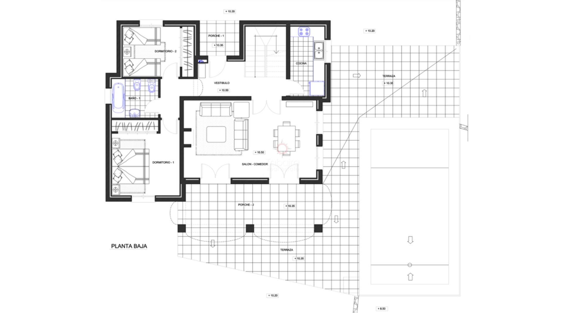 - Direct access to a spacious sun terrace with a private swimming pool, perfect for relaxing, entertaining, or enjoying the Mediterranean climate