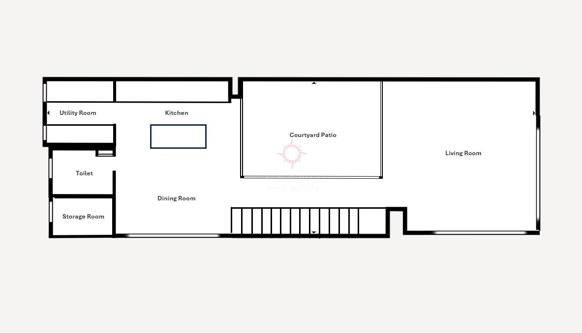 The main floor is dedicated to open-plan living and connection with the Mediterranean climate. A vast living room is the heart of the home, framed by full-height glass sliding doors that effortlessly link the space to two distinct outdoor zones: a quiet internal courtyard and the sun-drenched, south-facing pool terrace. Towards the rear, the open-plan kitchen and dining room provides direct access to an alfresco dining and garden area. This floor is completed by a guest toilet and a practical utility room, discreetly housing the washer, dryer, and extra storage.