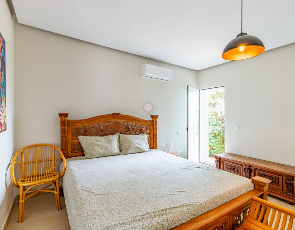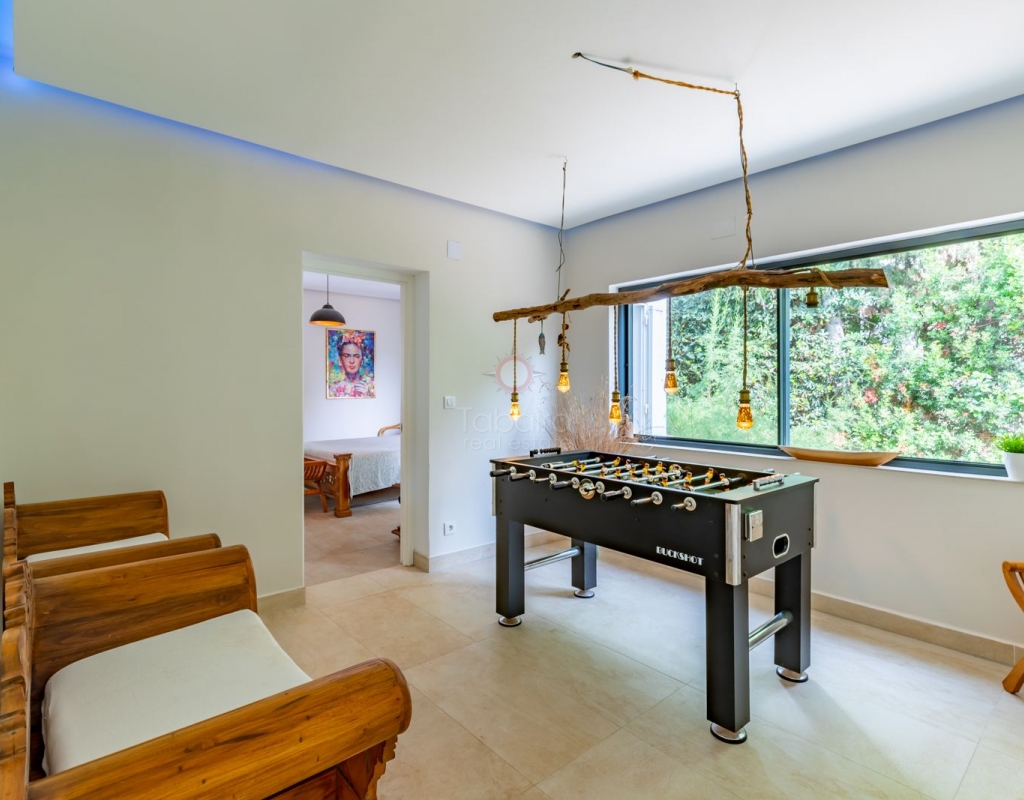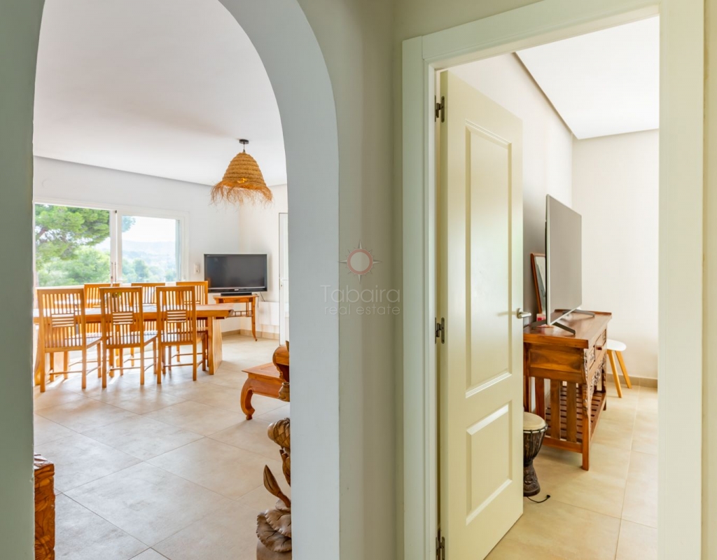 In the exclusive residential area of La Sabatera in Moraira, just a few minutes' walk from the town center and its beaches, lies this villa that combines Mediterranean tranquility with the convenience of a privileged location. With beautiful sea views and surrounded by amenities, this property presents itself as a unique opportunity on the Costa Blanca.