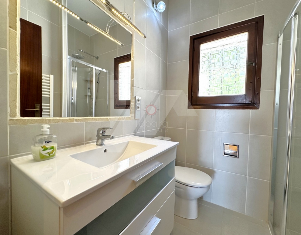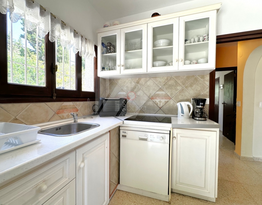 Charming villa with views of the Moraira bay. Great potential in the sought-after area of Fanadix.Located on a quiet plot of 800 m², this villa of 200 m² built and more than 150 m² usable offers an excellent base to enjoy the Mediterranean lifestyle, whether as a permanent residence, a second home, or as an investment for vacation rental. Comfortable and functional layout over two levels: Main floor: Independent kitchen. Two spacious living rooms, with views of the Sea. Guest bathroom. Two double bedrooms. Terrace-porch with views of the Moraira bay. Lower floor: One additional bedroom with bathroom. Large storage room, with potential to become a studio, game room, gym, or even more bedrooms. Highlights and potential: Privileged location in Fanadix, one of the quietest and most desirable residential areas of Moraira. Just a short walk from hidden coves and sandy beaches. Very close to the center of Moraira, with its wide range of high-end restaurants, exclusive shops, and quality services. A short drive from Calpe, Benissa, and Jávea, opening up a range of cultural, gastronomic, and recreational opportunities. Home with a solid structure and generous spaces, perfect for updating to your taste and increasing value. Great opportunity to customize and increase its value with a small renovation. Its location, orientation, and views make this villa a gem with enormous potential in the current market.
