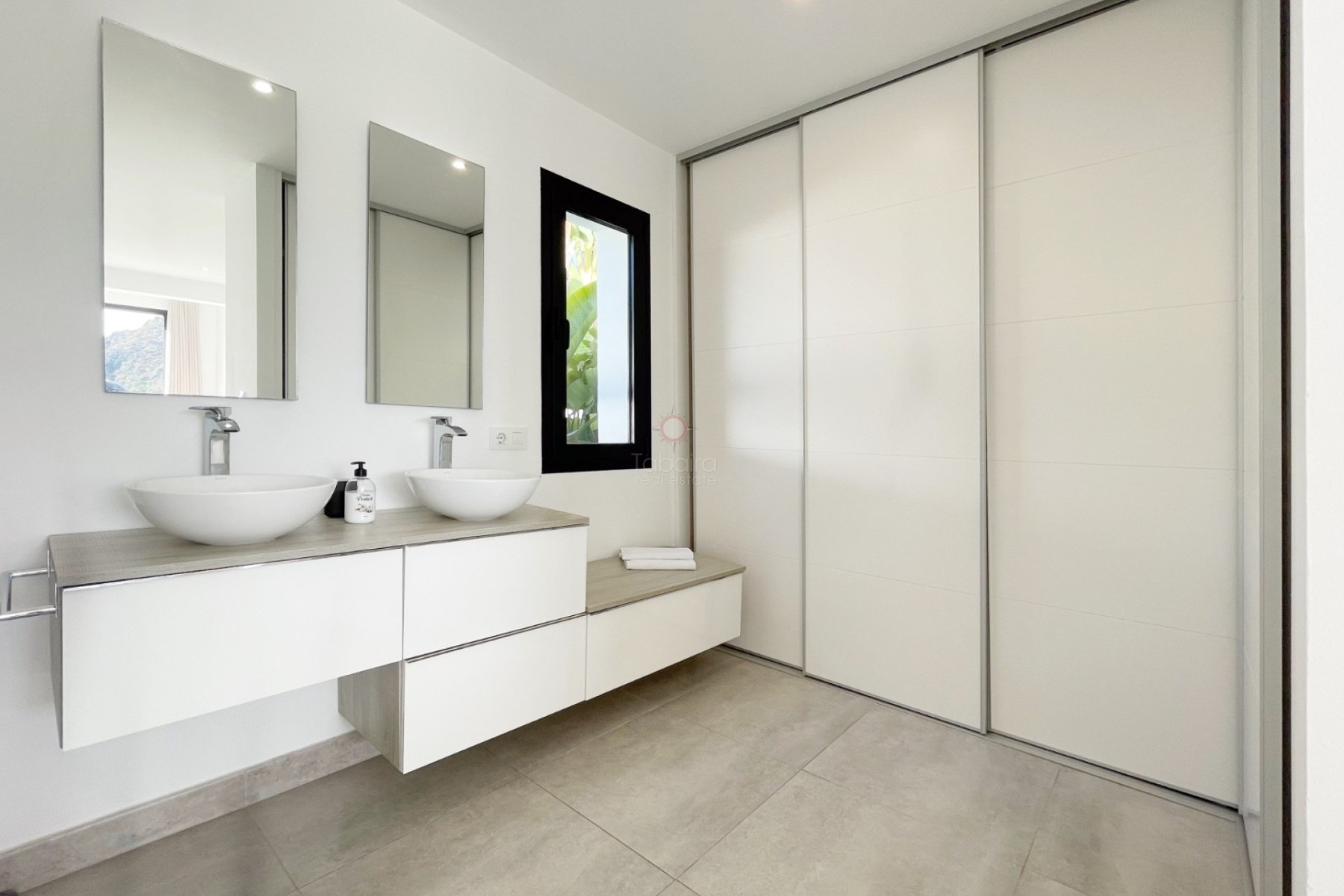 Discover this modern villa for sale in Moraira, situated in an ideal location with beautiful views over the valley, the sea and the bay of El Portet. The property combines modern design with optimal living comfort. Ideal for those looking for a spacious home on the Costa Blanca. The property has four spacious bedrooms and four modern bathrooms, spread over two floors.
