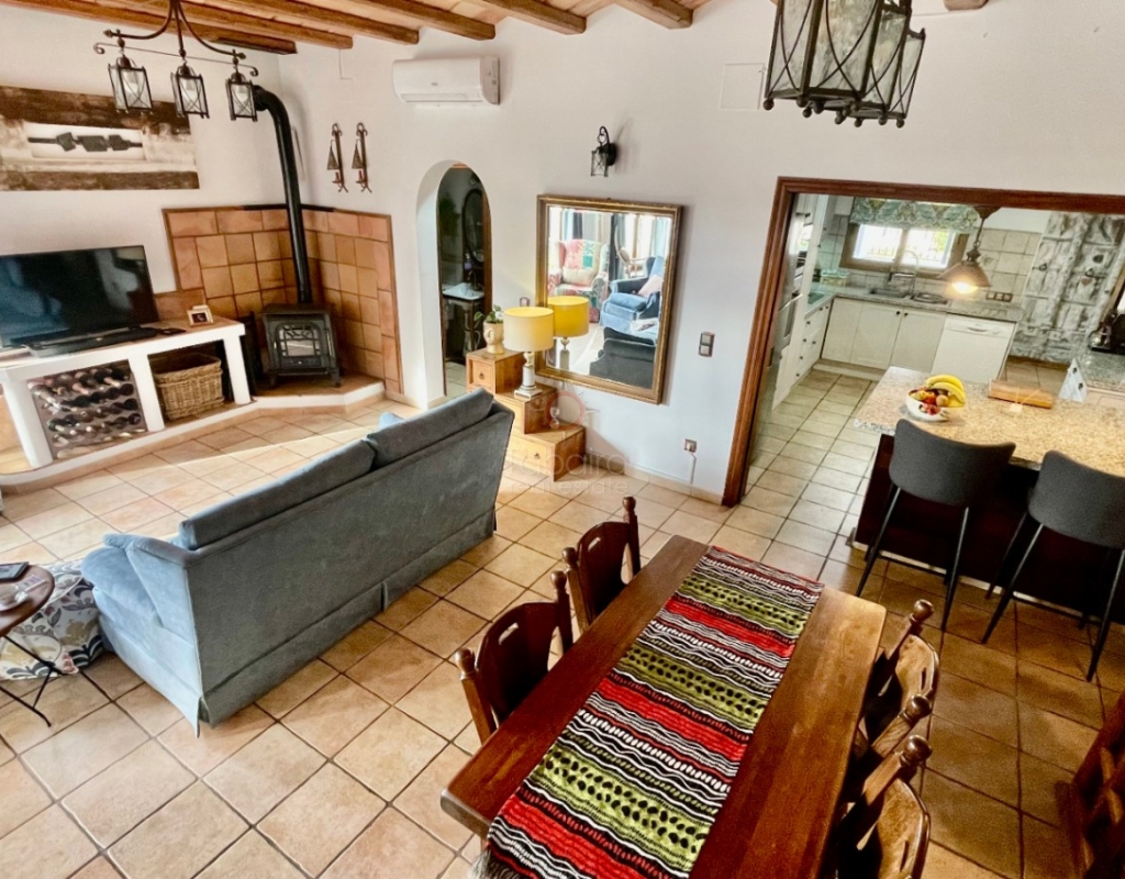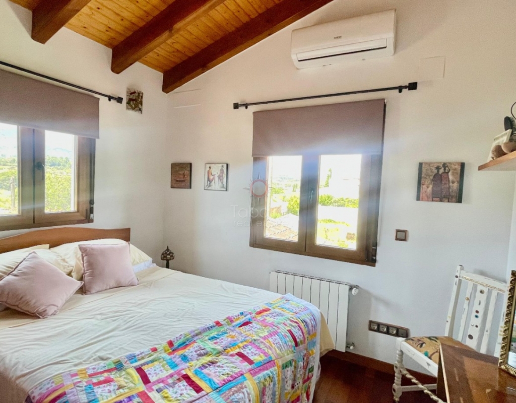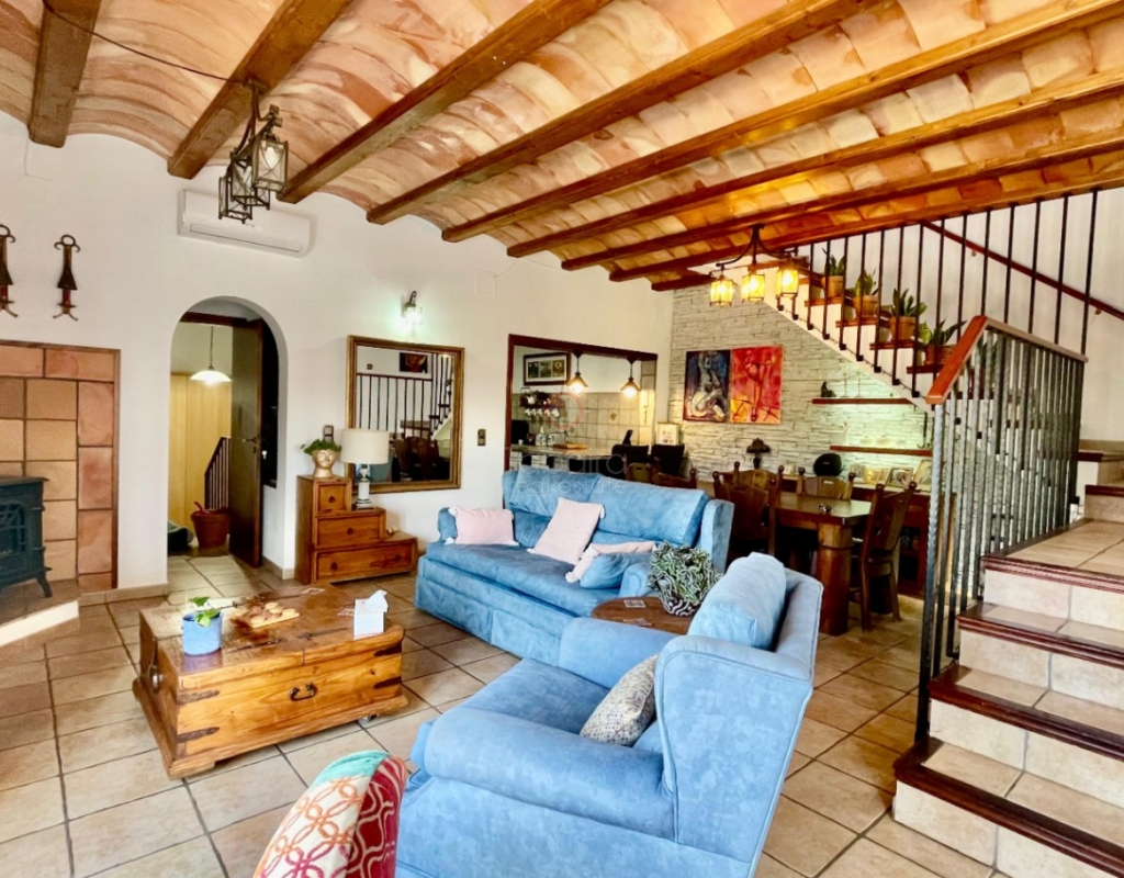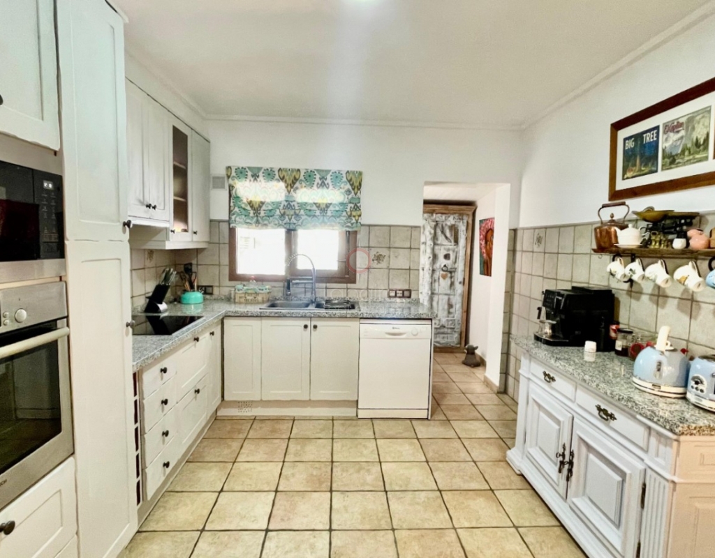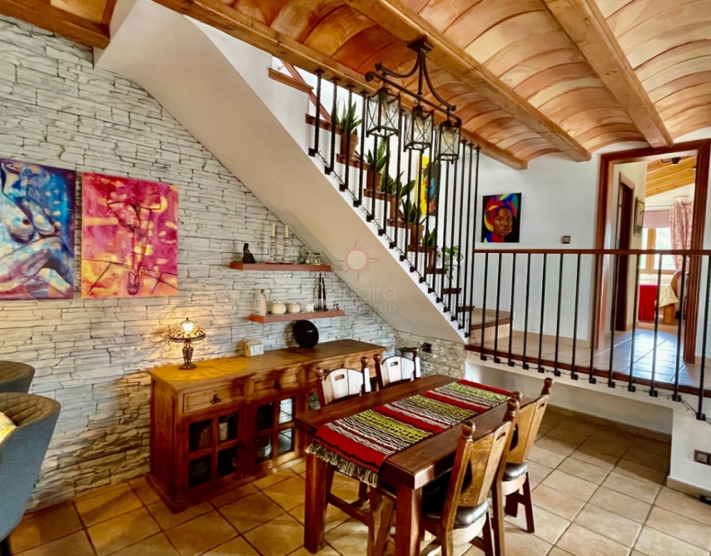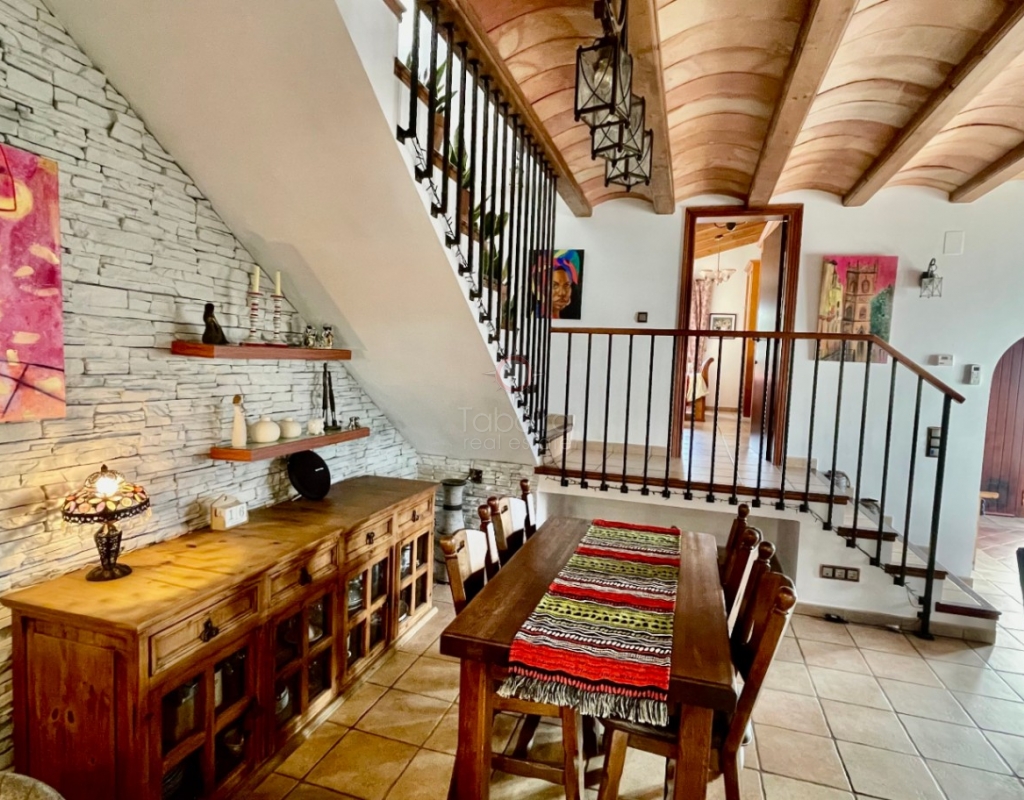 A modern four-bed village home with a separate two-bed casita. These two beautiful properties preserve their traditional charm while offering a unique contemporary ambience. Set on a prime, private, south-facing frontline flat plot with breathtaking panoramic views, these exceptional properties are just a 3-minute walk from the centre of Alcalalí. The main house comprises an open covered gallery wooden beamed ceiling naya with entrance door to an 80m2 open plan reception lounge dining area with large feature double arched patio windows, and wood beamed ceilings, corner wood burner, underfloor heating and hot and cold air conditioning, guest toilet, large open plan fully fitted kitchen with breakfast island, utility pantry area with external door leading to an outside paella cooking area. From the lounge, three steps lead up to the master bedroom, featuring pitched wood-beamed ceilings, built-in sliding wardrobes, hot and cold air conditioning, and an en-suite walk-in shower room. Upstairs, you will find a spacious reception lounge area, a hallway leading to three double bedrooms, all with pitched wood-beamed ceilings, sliding fitted wardrobes, loft mezzanine storage areas, and hot and cold air conditioning. On this level, you have one ensuite shower room and an additional family bathroom. The main house features a large, underground 100 m² garage with an electric door, separate storage, a guest toilet, a wine cellar, and a soundproof room, making it ideal for musicians. The garage can be accessed from the main house via an internal staircase. The villa has a very private 8 x 4.5m pool with south-facing sun terrace, BBQ chill-out area, and easily maintained private Mediterranean gardens. The separate, self-contained guest house, attached to the main house, shares the same spectacular views and has its own private garden with an open, south-facing covered naya. Accommodation comprises an entrance door leading to a lounge/dining area with wood beam gallery ceiling, hot and cold air conditioning, a separate fitted kitchen, guest toilet, hallway to spacious master bedroom with sliding fitted wardrobes, dressing area and hot and cold air conditioning, a double bedroom with access to the external secured courtyard, and a bathroom. This guest house can be accessed, if required, from the main house via the internal staircase to the garage. It is perfect for multi-generational living or could be used commercially, as it is currently, providing an additional rental income. Both properties benefit from high specification double glazing and radiator oil central heating. The main house also has underfloor heating. Viewing is strongly recommended to appreciate this exceptional village residence with privacy, easy access, and a unique location.