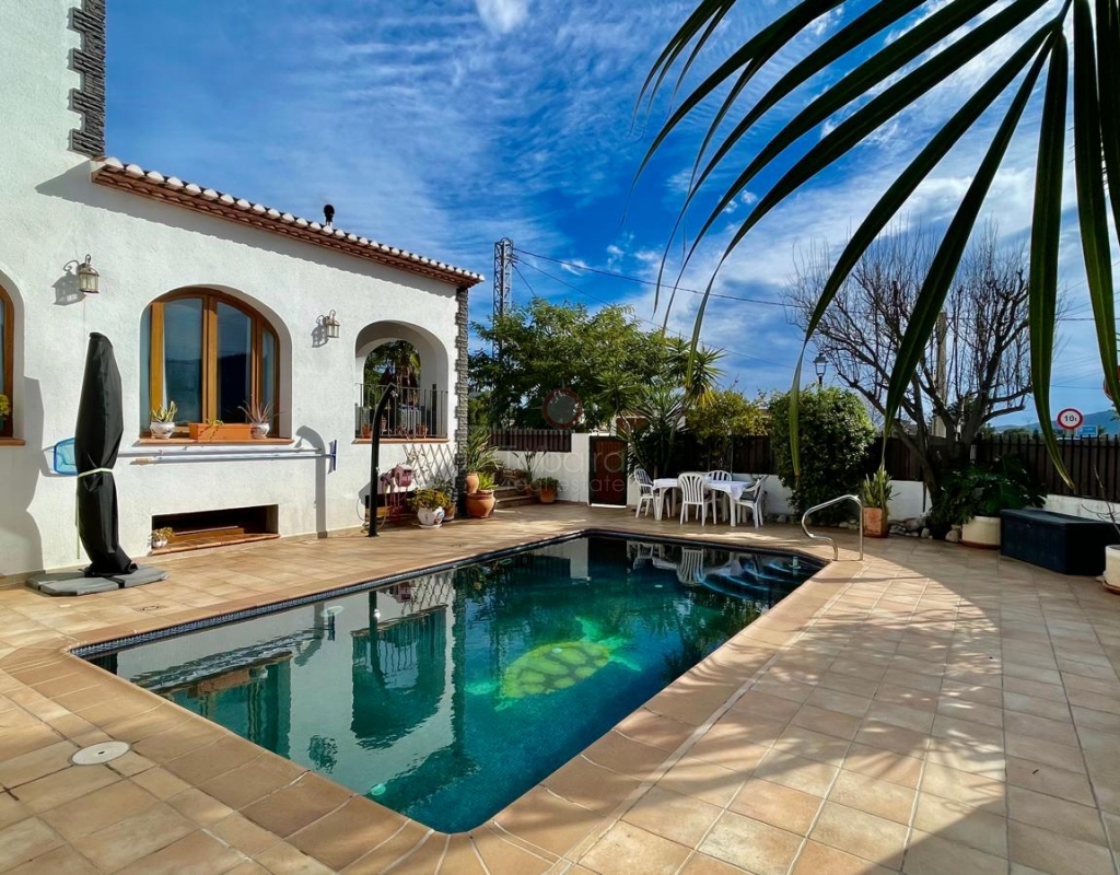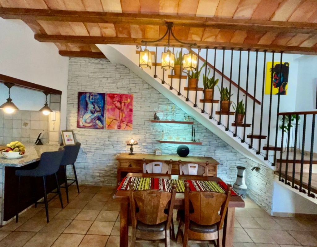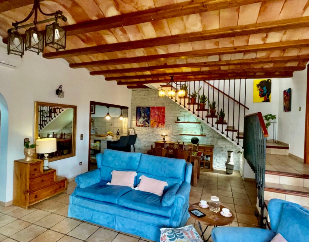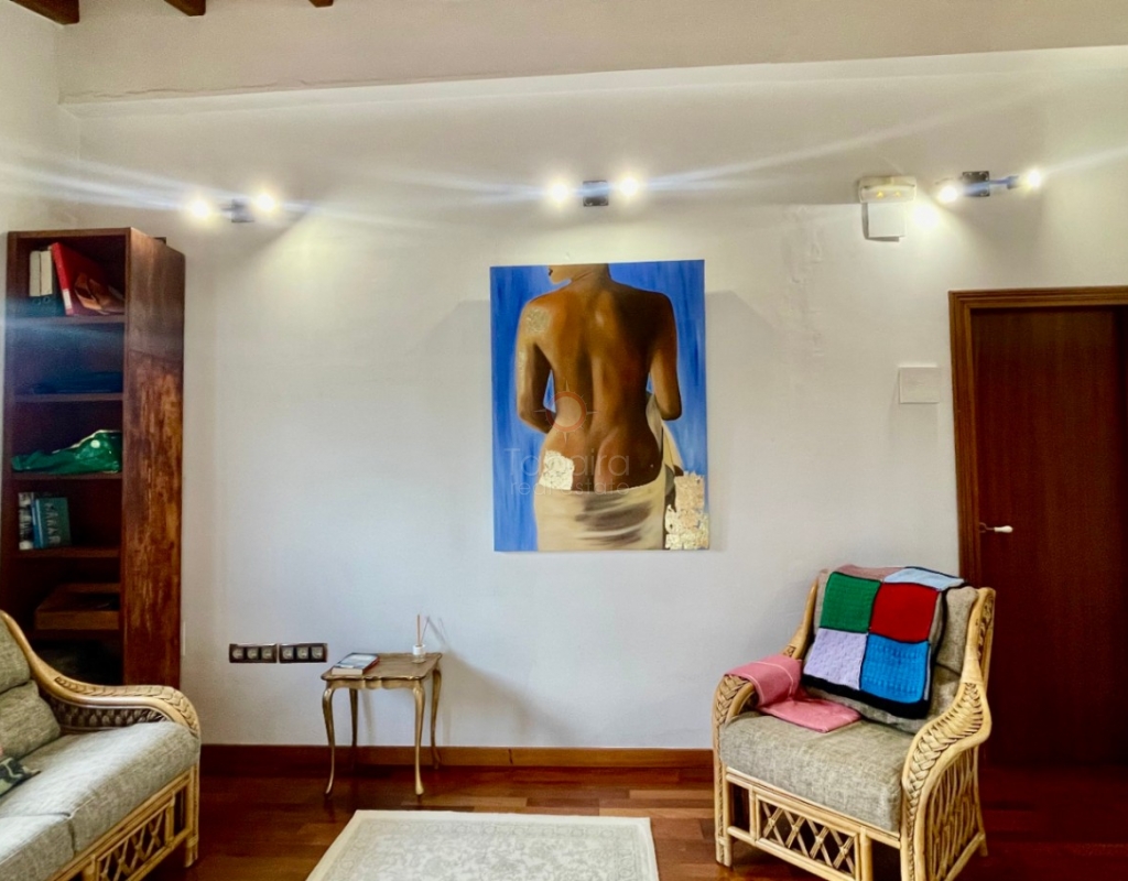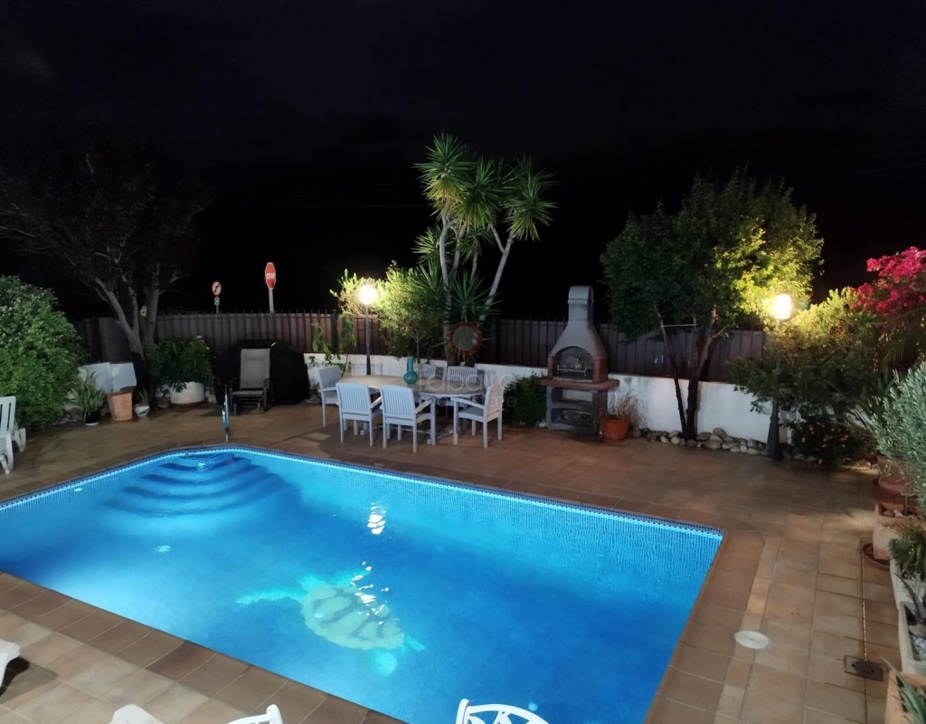 A modern four-bed village home with a separate two-bed casita. These two beautiful properties preserve their traditional charm while offering a unique contemporary ambience. Set on a prime, private, south-facing frontline flat plot with breathtaking panoramic views, these exceptional properties are just a 3-minute walk from the centre of Alcalalí. The main house comprises an open covered gallery wooden beamed ceiling naya with entrance door to an 80m2 open plan reception lounge dining area with large feature double arched patio windows, and wood beamed ceilings, corner wood burner, underfloor heating and hot and cold air conditioning, guest toilet, large open plan fully fitted kitchen with breakfast island, utility pantry area with external door leading to an outside paella cooking area. From the lounge, three steps lead up to the master bedroom, featuring pitched wood-beamed ceilings, built-in sliding wardrobes, hot and cold air conditioning, and an en-suite walk-in shower room. Upstairs, you will find a spacious reception lounge area, a hallway leading to three double bedrooms, all with pitched wood-beamed ceilings, sliding fitted wardrobes, loft mezzanine storage areas, and hot and cold air conditioning. On this level, you have one ensuite shower room and an additional family bathroom. The main house features a large, underground 100 m² garage with an electric door, separate storage, a guest toilet, a wine cellar, and a soundproof room, making it ideal for musicians. The garage can be accessed from the main house via an internal staircase. The villa has a very private 8 x 4.5m pool with south-facing sun terrace, BBQ chill-out area, and easily maintained private Mediterranean gardens. The separate, self-contained guest house, attached to the main house, shares the same spectacular views and has its own private garden with an open, south-facing covered naya. Accommodation comprises an entrance door leading to a lounge/dining area with wood beam gallery ceiling, hot and cold air conditioning, a separate fitted kitchen, guest toilet, hallway to spacious master bedroom with sliding fitted wardrobes, dressing area and hot and cold air conditioning, a double bedroom with access to the external secured courtyard, and a bathroom. This guest house can be accessed, if required, from the main house via the internal staircase to the garage. It is perfect for multi-generational living or could be used commercially, as it is currently, providing an additional rental income. Both properties benefit from high specification double glazing and radiator oil central heating. The main house also has underfloor heating. Viewing is strongly recommended to appreciate this exceptional village residence with privacy, easy access, and a unique location.
