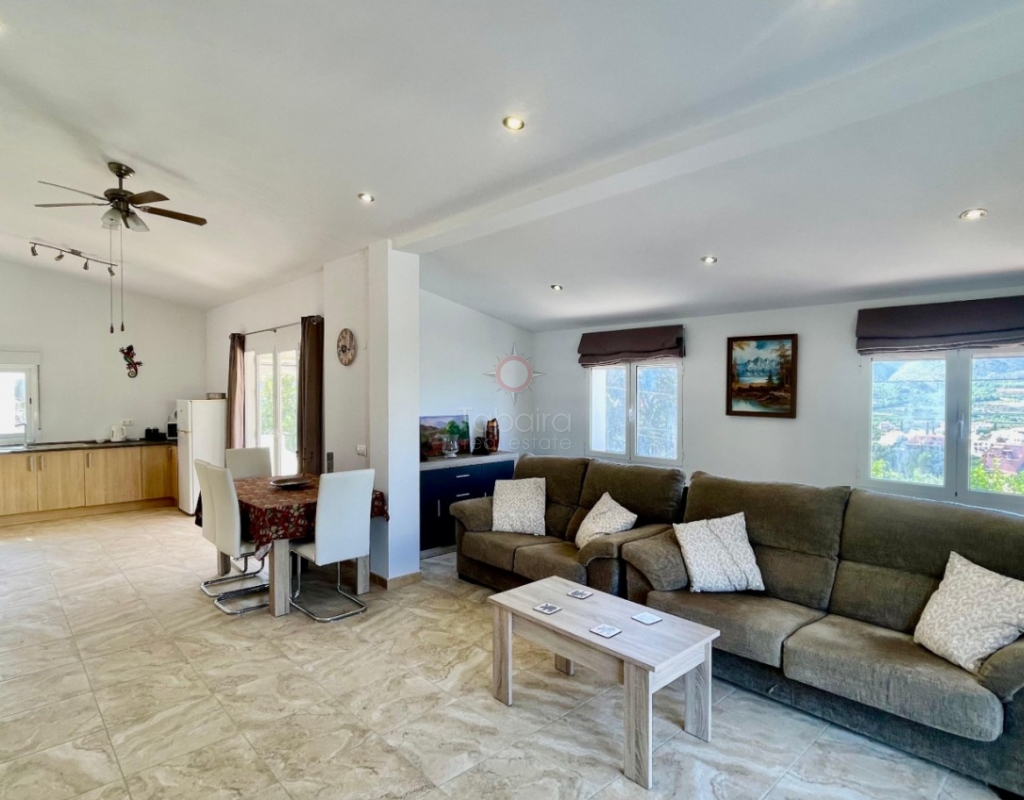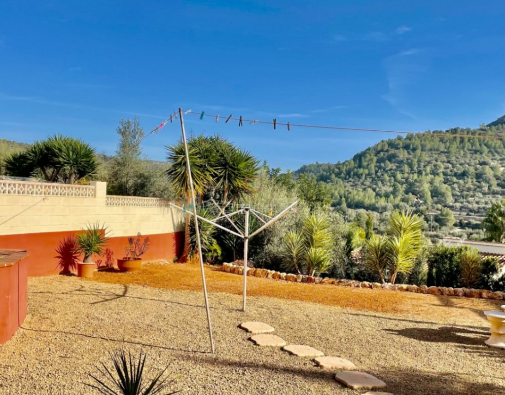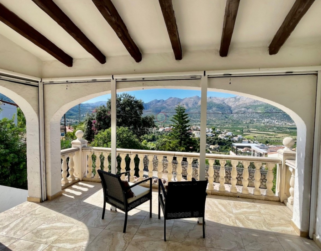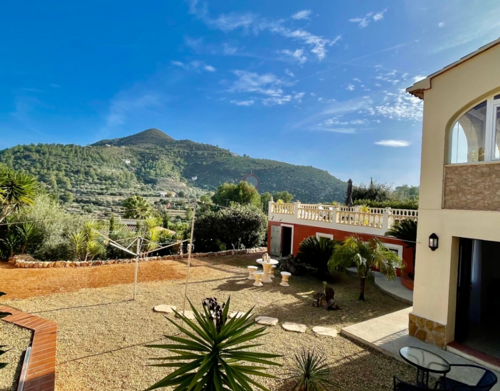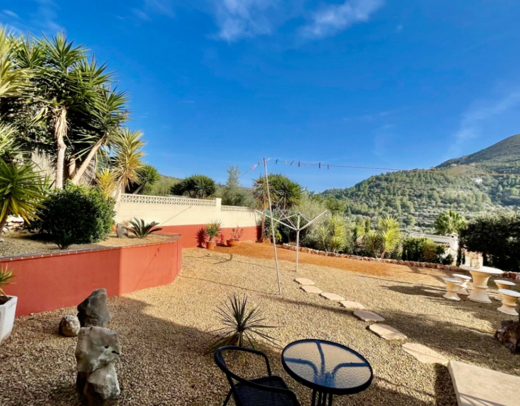This modern reformed detached villa offers fabulous panoramic views across the Orba Valley and is presented in excellent condition throughout. The main accommodation comprises an open covered wood-beamed naya with patio doors leading to a spacious 70m² open-plan lounge and dining area with high-pitched ceilings, a freestanding corner wood burner, ceiling fan, and double patio doors opening to a private sun terrace and garden area. The large, open plan, fully fitted kitchen seamlessly connects to the living space, creating a bright and sociable environment. A hallway leads to a generous master bedroom with free-standing wardrobes, a twin bedroom with fitted wardrobes, and a modern family shower room. The lower level is arranged as a large open-plan apartment with its own external entrance, comprising a bedroom suite, chill-out room, ensuite walk-in shower room, and storage cupboard—perfect for guests or rental potential. Outside, the villa features mature Mediterranean gardens, private sun terraces ideal for entertaining, and off-road parking. The property benefits from new double glazing and offers the possibility, with town hall permission, to build a swimming pool. This easy-access villa would make an excellent permanent residence or holiday home, located close to the local amenities of Orba, and viewing is highly recommended to fully appreciate the peaceful private setting and stunning valley views.
