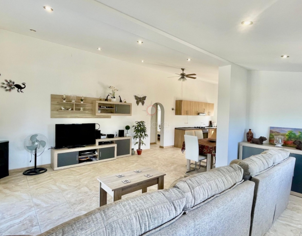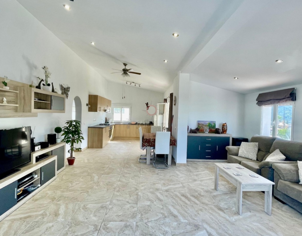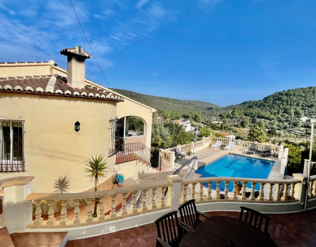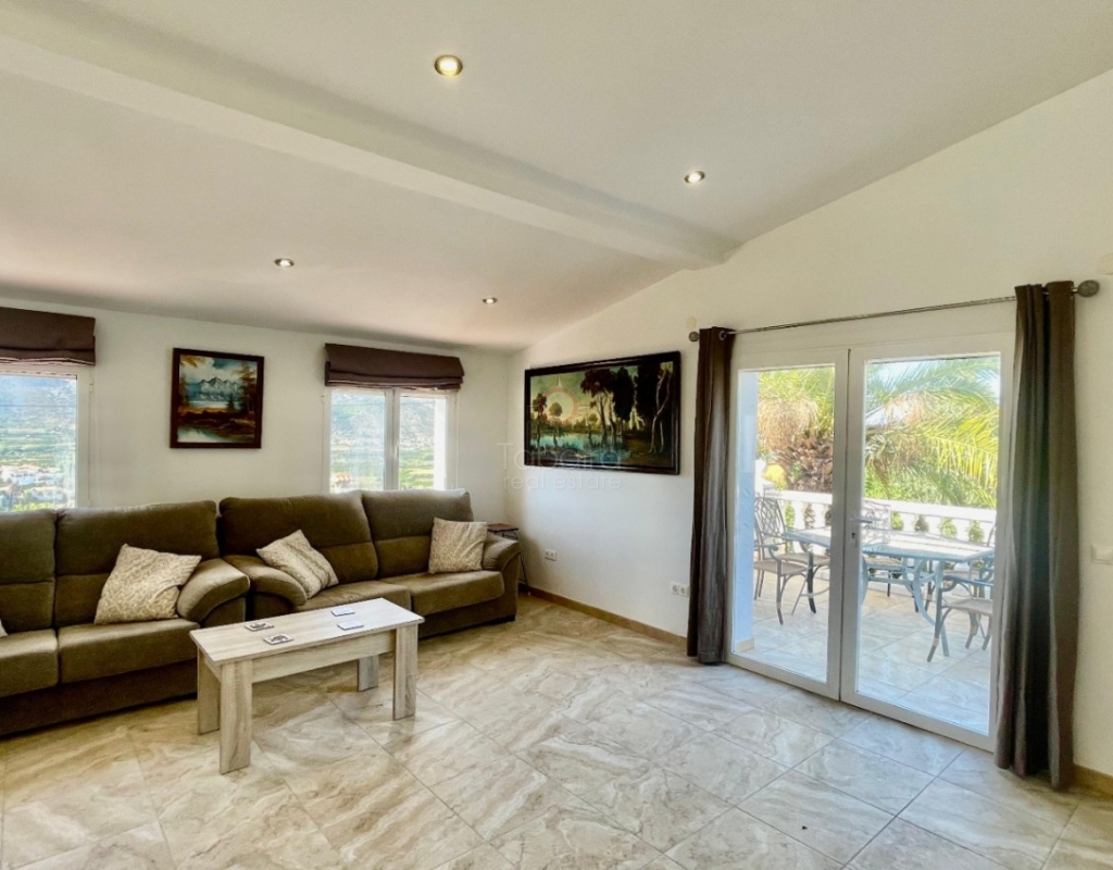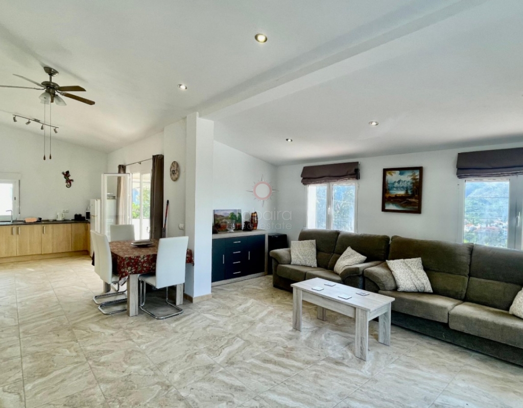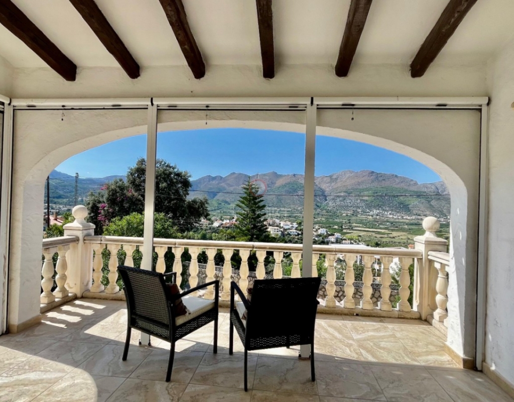 This modern reformed detached villa offers fabulous panoramic views across the Orba Valley and is presented in excellent condition throughout. The main accommodation comprises an open covered wood-beamed naya with patio doors leading to a spacious 70m² open-plan lounge and dining area with high-pitched ceilings, a freestanding corner wood burner, ceiling fan, and double patio doors opening to a private sun terrace and garden area. The large, open plan, fully fitted kitchen seamlessly connects to the living space, creating a bright and sociable environment. A hallway leads to a generous master bedroom with free-standing wardrobes, a twin bedroom with fitted wardrobes, and a modern family shower room. The lower level is arranged as a large open-plan apartment with its own external entrance, comprising a bedroom suite, chill-out room, ensuite walk-in shower room, and storage cupboard—perfect for guests or rental potential. Outside, the villa features mature Mediterranean gardens, private sun terraces ideal for entertaining, and off-road parking. The property benefits from new double glazing and offers the possibility, with town hall permission, to build a swimming pool. This easy-access villa would make an excellent permanent residence or holiday home, located close to the local amenities of Orba, and viewing is highly recommended to fully appreciate the peaceful private setting and stunning valley views.