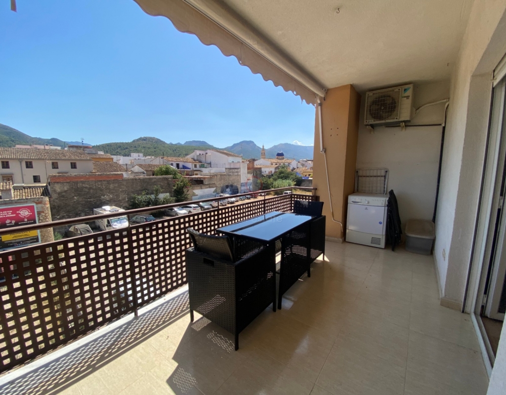 A beautifully maintained Mediterranean-style penthouse apartment in a quiet, sought-after area of Xaló. Boasting three spacious bedrooms and two bathrooms, the home offers comfort and space for families or anyone seeking a relaxed lifestyle. The bright, open living-dining area serves as the heart of the home, leading to a 12 m² south-facing terrace perfect for year-round sun, outdoor breakfasts, or evening dinners with lovely views. The functional kitchen integrates seamlessly with the living space, while the bedrooms provide peace and privacy. Additional features include a private parking space within the building, a large storage room, and access to a sunny communal roof terrace, to enjoy the surrounding scenery. Located near shops, cafés, restaurants, and the weekly market, this apartment offers comfort and convenience for genuine village living on the Costa Blanca.