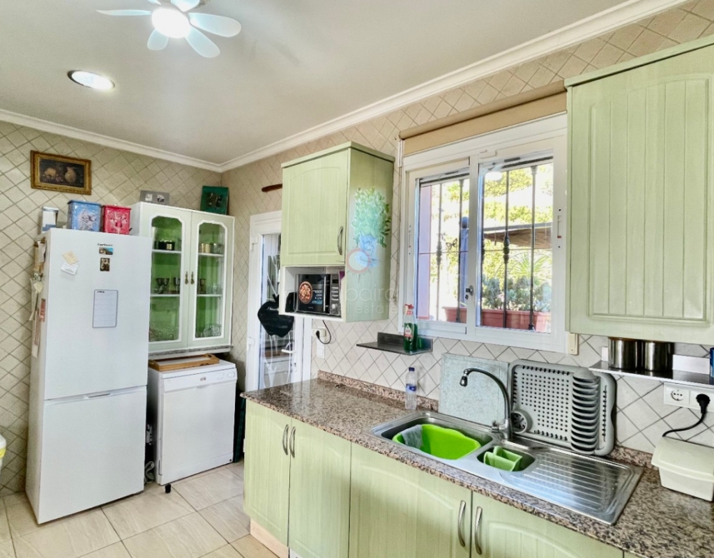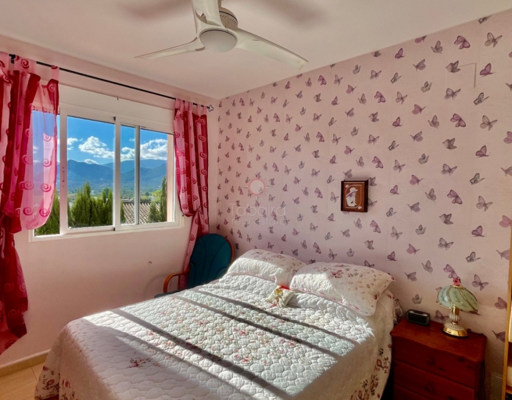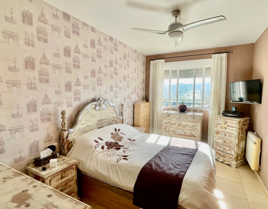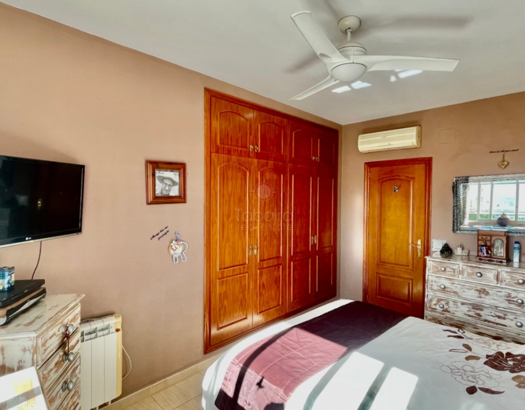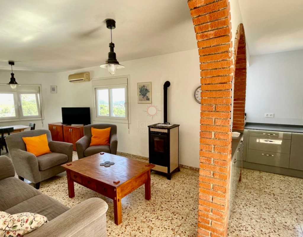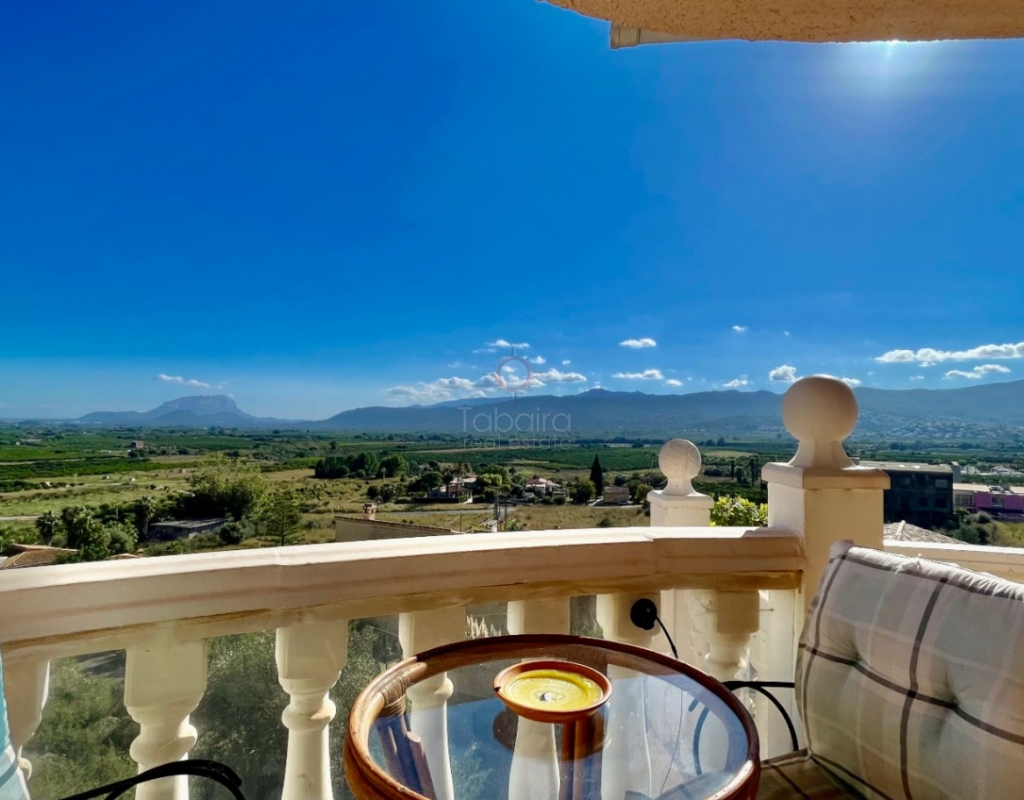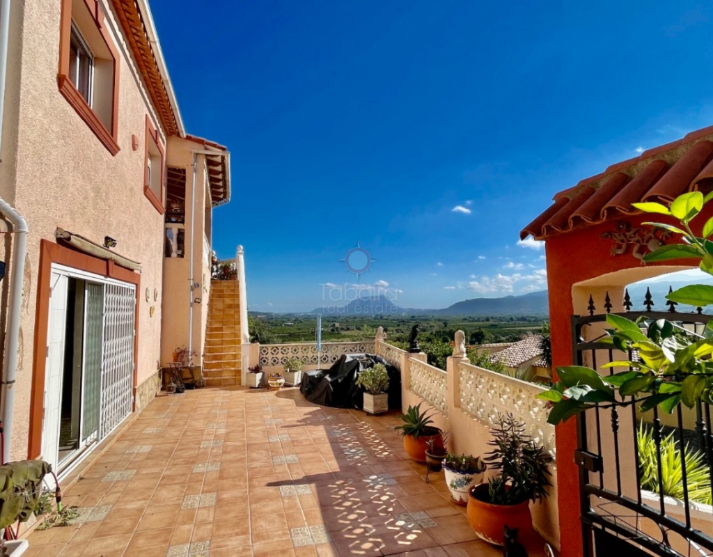 This detached, light-filled villa enjoys a perfect south-facing position with breathtaking panoramic views across the mountains, valley, and towards the distant sea. Ideally located within just a 3-minute walk to the charming village of Tormos, the property offers spacious and versatile accommodation throughout. The main level features a large covered naya with wood-beamed ceilings, retractable sun awnings, and sliding patio doors opening into a bright open-plan living and dining area with hot & cold air conditioning. The American-style kitchen is fully fitted and includes a breakfast bar and separate utility room, with direct access to a private sun terrace, perfect for al fresco dining. A hallway leads to the master bedroom with fitted wardrobes, hot & cold air conditioning, ceiling fan, and an ensuite shower room. There are also two further double bedrooms, both with fitted wardrobes, ceiling fans, air conditioning, and a shared family bathroom. On the lower level, double patio doors open onto spacious entertainment rooms that offer excellent potential to be converted into a self-contained two-bedroom apartment with its own bathroom. The exterior offers a generous sun terrace with a shaded pergola, low-maintenance gardens, and a carport with a sunshade sail for off-street parking. The property benefits from double glazing and numerous additional features throughout. Viewing is highly recommended to fully appreciate the impressive views and exceptional setting of this south-facing villa overlooking the valley and coastline