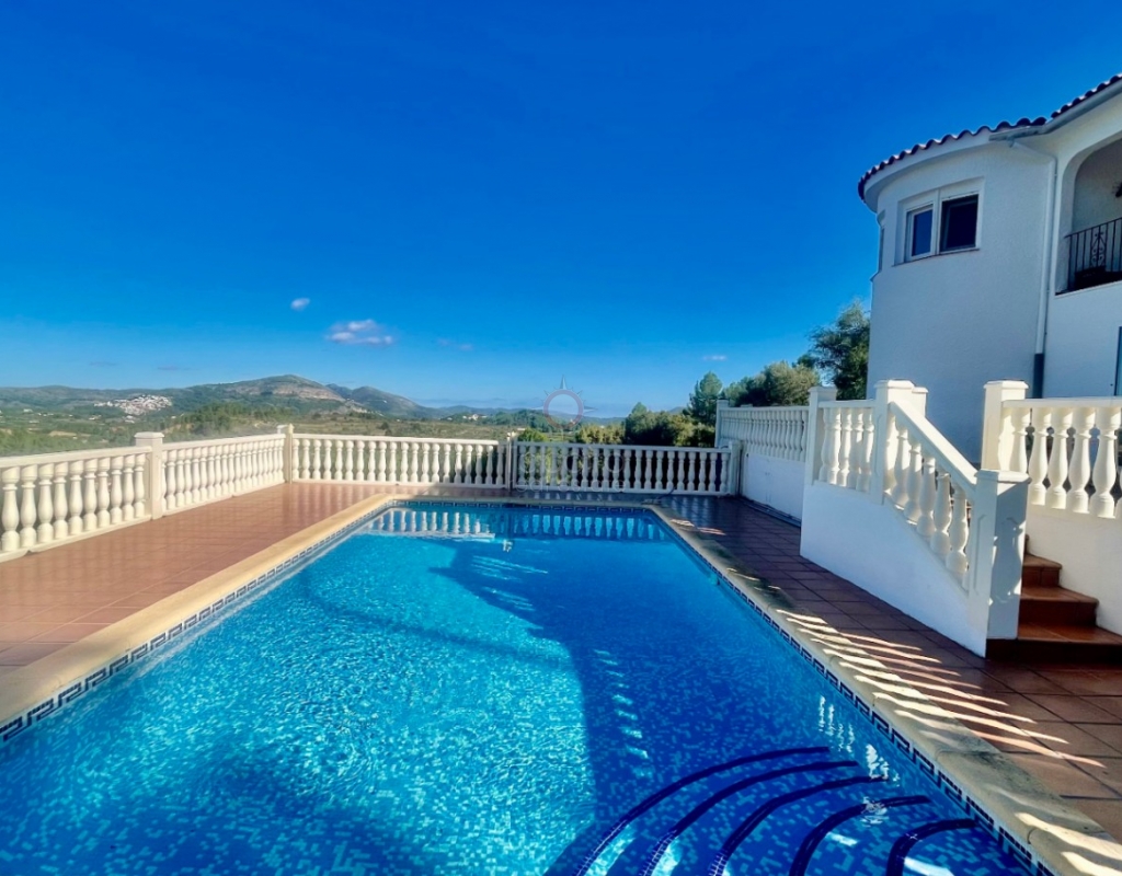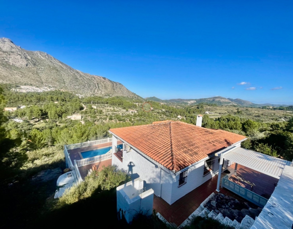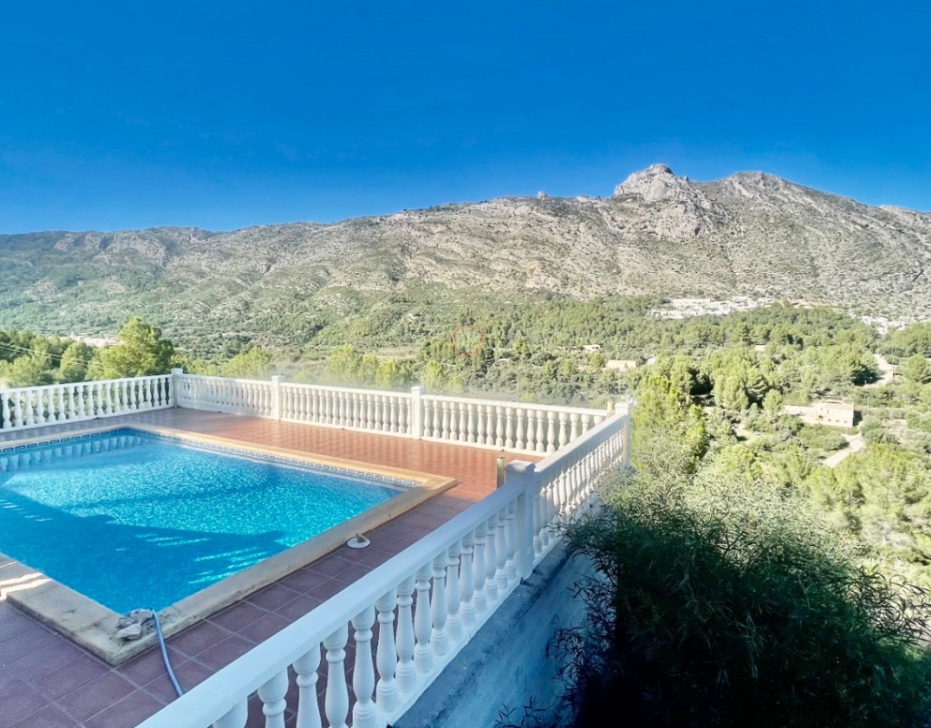 This beautifully presented detached villa offers complete privacy and breathtaking mountain views, nestled in a peaceful rural setting close to the charming village of Benigembla. Surrounded by nature, it is the perfect retreat for those seeking tranquillity without being far from village life. The main accommodation features an inviting entrance hallway leading to a spacious open-plan lounge and dining area with a freestanding pellet burner, hot and cold air conditioning, and a door leading to a large covered naya that overlooks the private pool and the stunning mountain backdrop — an ideal space for year-round outdoor living. The modern, high-specification kitchen is fully fitted and includes a breakfast bar. A hallway leads to the master bedroom with fitted wardrobes, hot and cold air conditioning, and a spacious ensuite walk-in shower room. There is also a twin bedroom with fitted wardrobes, a third bedroom or office, and a family shower room. In addition, the property benefits from a separate, self-contained one-bedroom guest suite with its own kitchen-dining area and shower room, perfect for guests or extended family. Outside, you’ll find a fabulous private pool with sun terrace, ideal for relaxing and soaking up the views, a large garage with a storage room, a separate storage casita, and a gated entrance with ample off-street parking. Further features include double glazing and numerous thoughtful details throughout. If you are looking for a peaceful countryside haven with spectacular views, this exceptional villa must be seen to be fully appreciated.