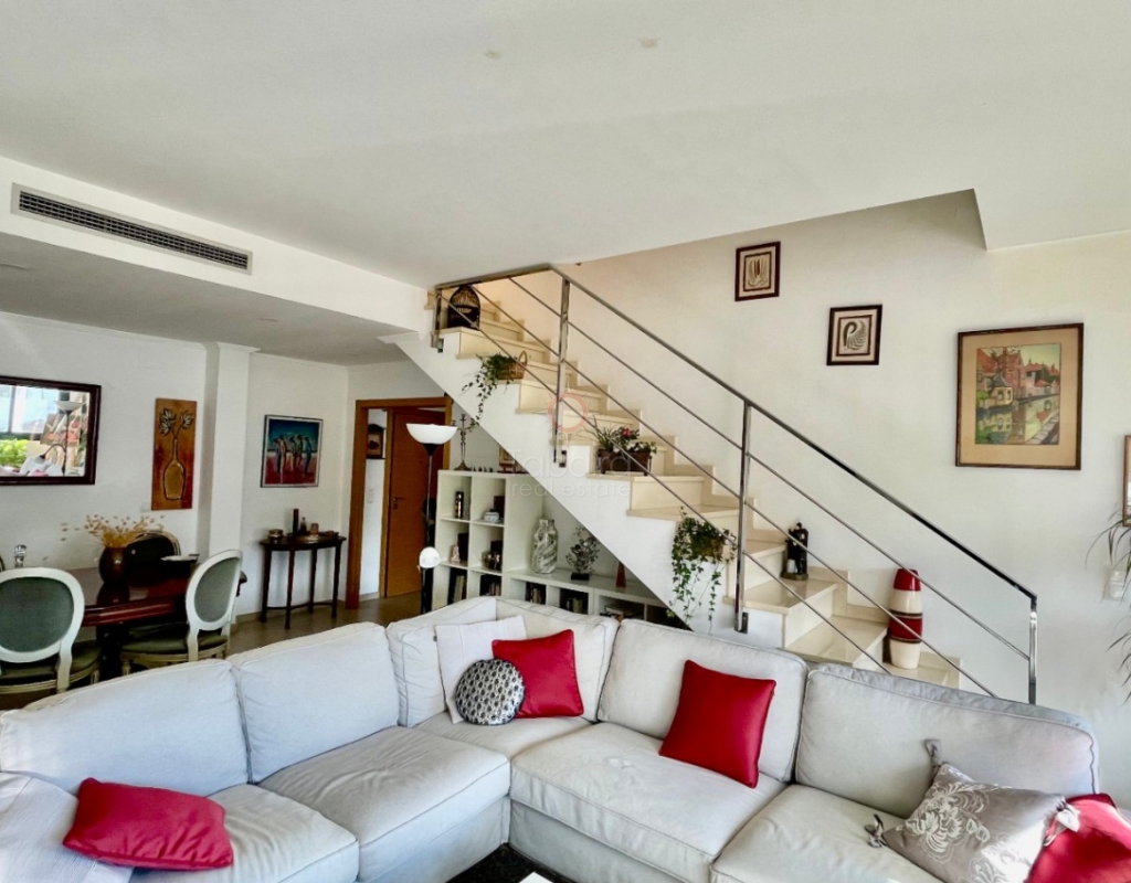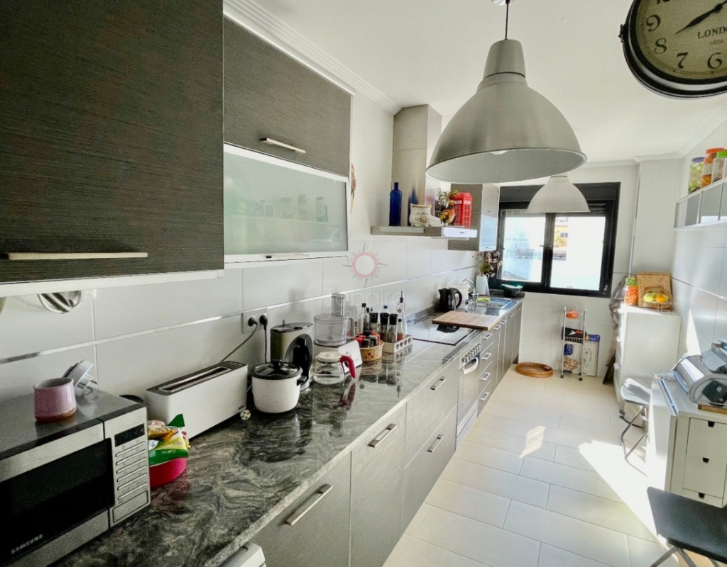 A fantastic, south-facing modern penthouse offering exceptional light and space, in a superb location. Spread over two levels, the accommodation includes an entrance hall leading to a bright and spacious open-plan lounge and dining area with patio doors, a modern kitchen, and a double bedroom with fitted wardrobes and an ensuite bathroom. Stairs from the lounge lead to the upper floor, where you’ll find an additional double bedroom with air conditioning and double sliding patio doors opening onto a private chill-out sun terrace. This level also features a family shower room and a third bedroom with sliding doors to another sunny terrace—perfect for alfresco dining. The property benefits from double glazing and internal ducted hot and cold air conditioning. Additional features include secure lift and stair access, a designated underground parking space, and a large storage room. Situated in the heart of Jalon, this penthouse offers unbeatable convenience with all local amenities on your doorstep. Ideal for those seeking a stylish home in a prime central location. Early viewing is highly recommended.