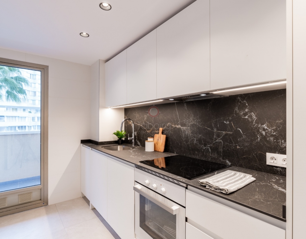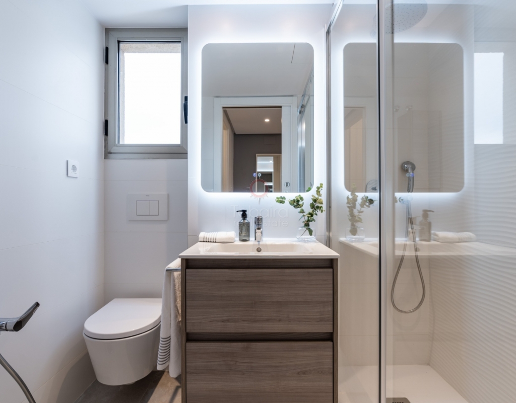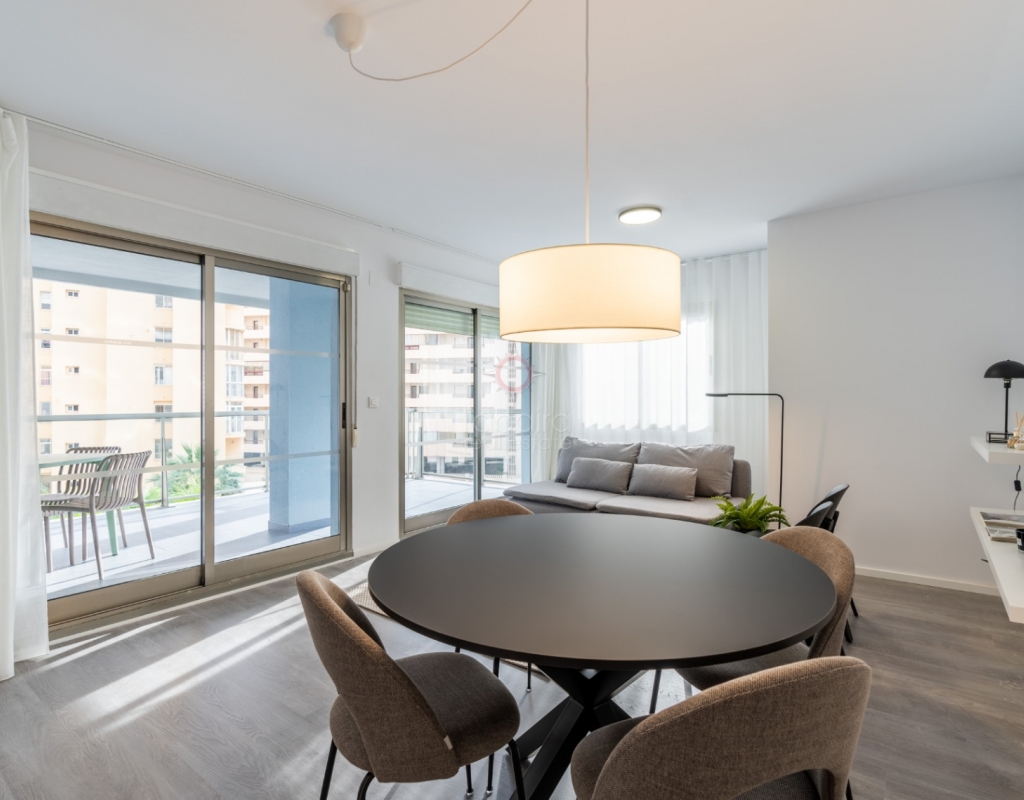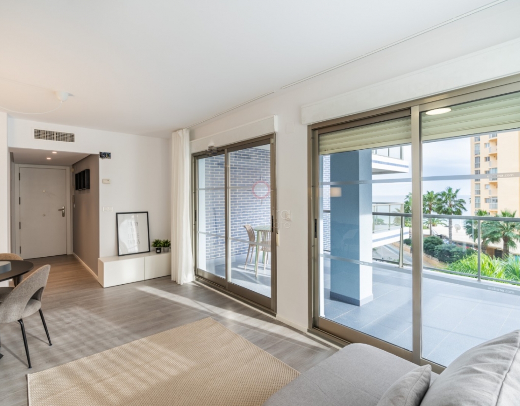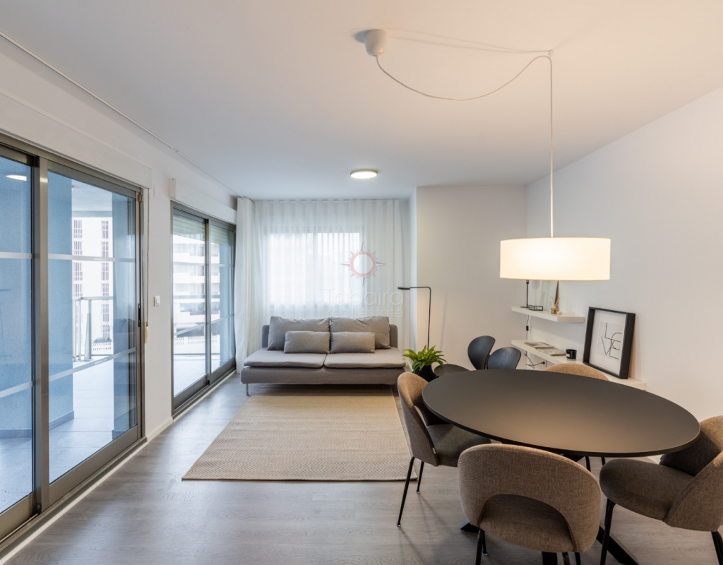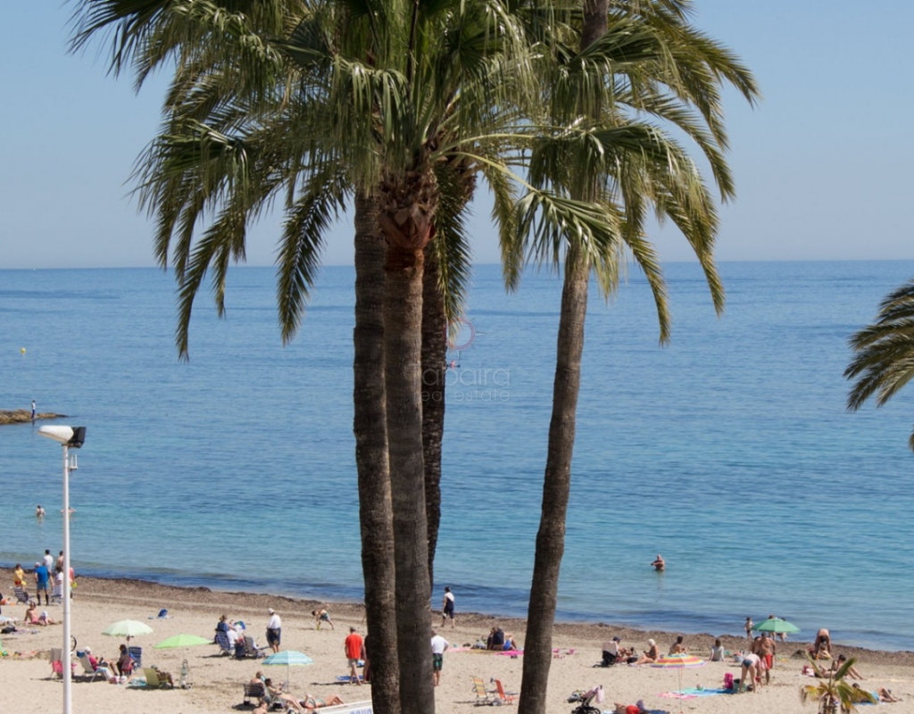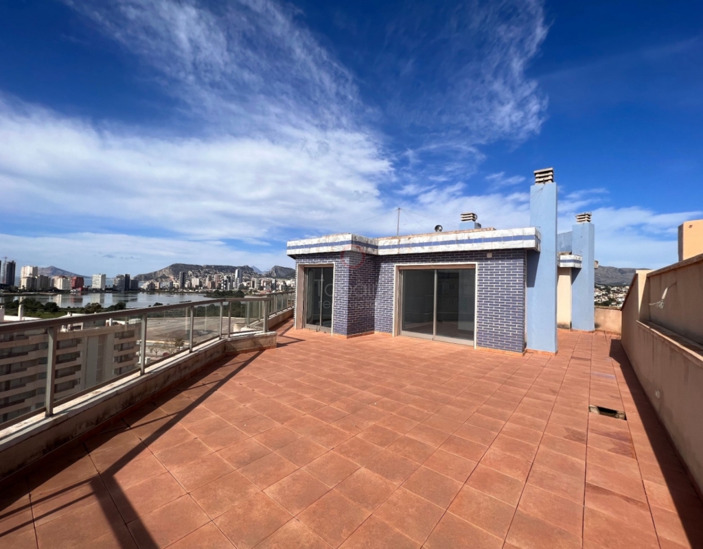 Duplex penthouse with sea views on Calpe's La Fossa sandy beach. Large roof terrace, multiple bedrooms, swimming pool and jacuzzi. This penthouse is located directly on the coast of Calpe, with La Fossa sandy beach just a few steps away. Restaurants, bars and amenities are located in the immediate vicinity. Large supermarkets are 400 metres away. The building has 10 floors, is equipped with a lift and is fully wheelchair accessible. Residents have access to a communal swimming pool, a children's pool and a jacuzzi. Description The penthouse is spread over two floors. On the lower floor there is a hall, two bedrooms and two bathrooms, one of which is en-suite. Both bedrooms have access to a covered terrace. An internal staircase leads to the upper floor. Here you will find the living and dining room, a separate kitchen, a bedroom with dressing room and en-suite bathroom, a guest toilet and the spacious roof terrace. This terrace offers panoramic views of the Mediterranean Sea, the Rock of Calpe and the Salinas. The penthouse has hot/cold air conditioning. Special features Penthouse directly on the seafront in CalpeTwo floors with spacious layoutEn-suite bedrooms + covered terracesLarge roof terrace with sea viewsHot/cold air conditioningLiftWheelchair accessibleSwimming pool, children's pool and jacuzziWhy view this penthouse Unique locationViews of the sea, Peñón de Ifach and SalinasA property with an exceptional location right on the beach and central to amenities. Would you like to view this penthouse? Make an appointment with one of our staff today. The photographs are of a show home and show what the property could look like after renovation.