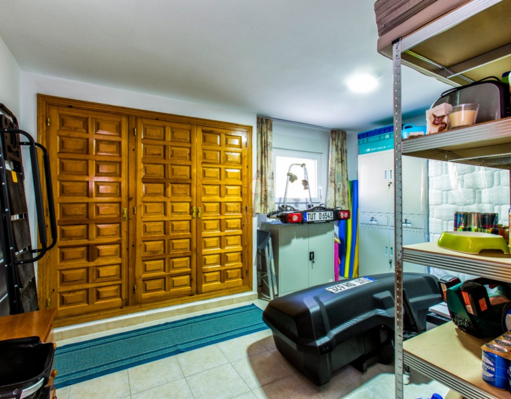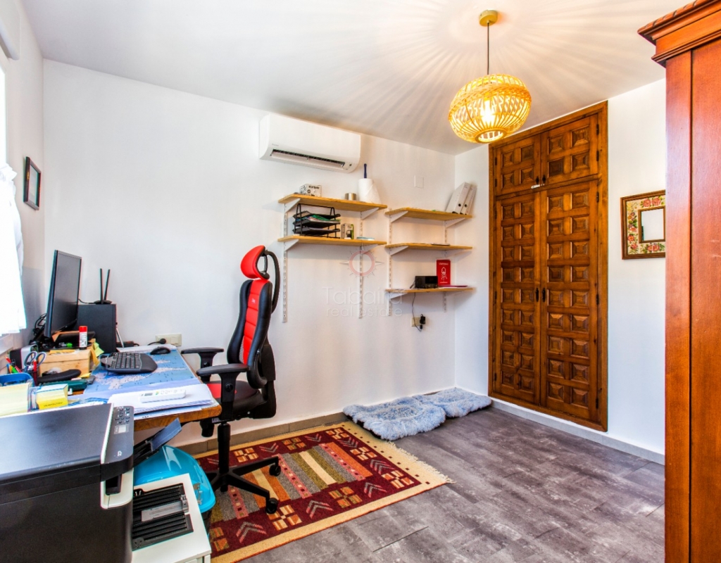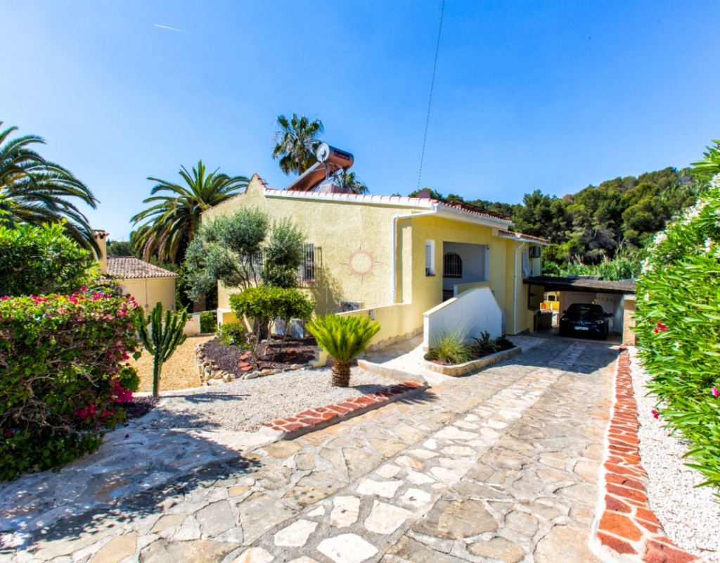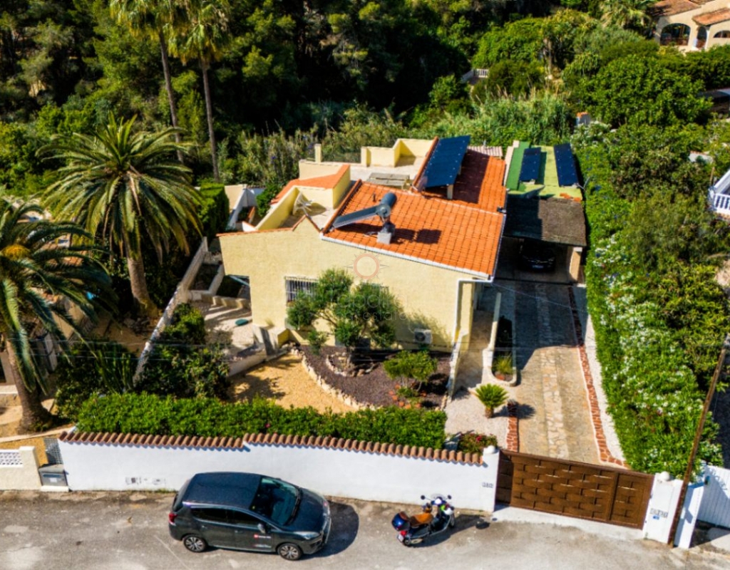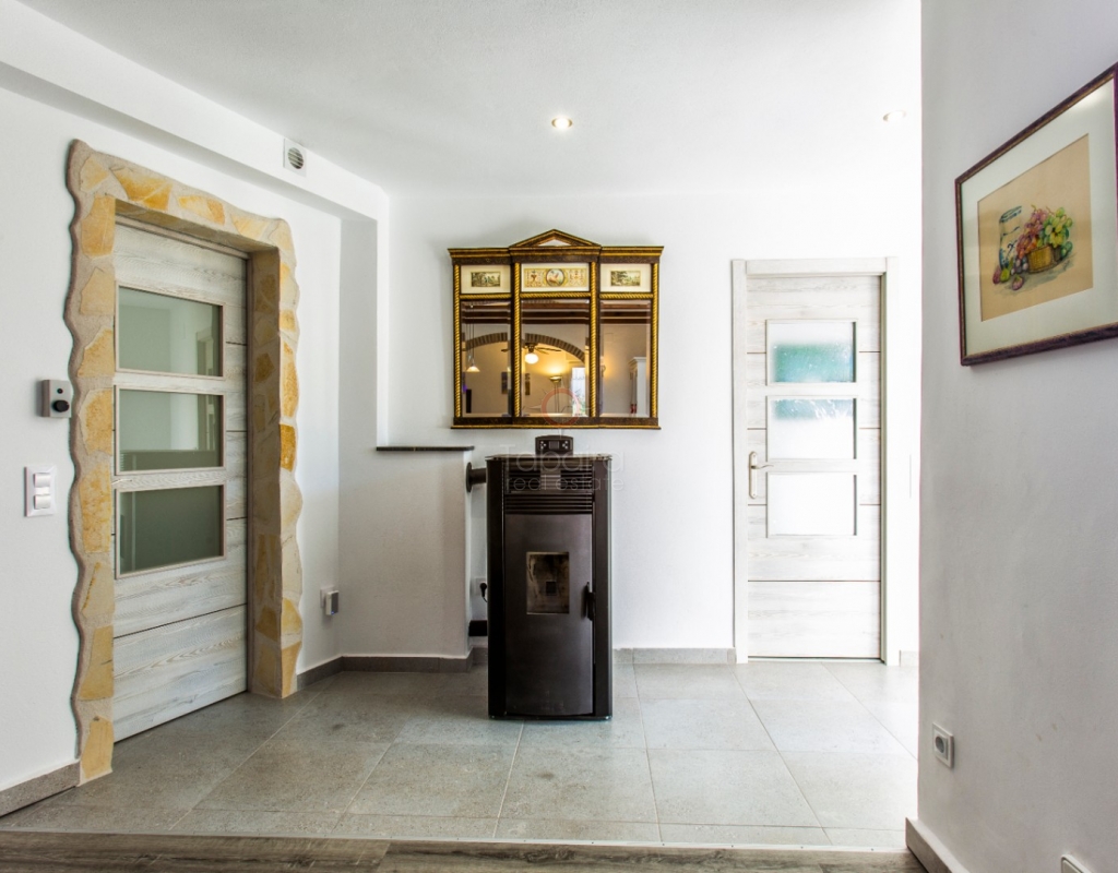 Villa for sale in Benissa La Viña with swimming pool and south-facing position. Spacious property with 5 bedrooms, solar panels, Energy Certificate A and possibility for two residential units on the Costa Blanca. In the quiet residential area of La Viña in Benissa, this well-maintained villa is for sale on the Costa Blanca on a flat plot with a south-facing position. The layout over two floors allows for a variety of uses. Description The upper floor has a living-dining room, a separate fully equipped kitchen and a porch enclosed by glass curtains with views of the green surroundings. This space connects to an open terrace. On this floor there is also a spacious bedroom with en-suite bathroom, a second bedroom (currently used as an office) and a separate bathroom. An internal staircase leads to the lower floor with three additional bedrooms, a bathroom, separate toilet, laundry room and extra storage. Two bedrooms are currently used as storage space and fitness or office space. The property is equipped with hot/cold air conditioning, pellet stoves on both floors, double glazing and electric shutters. The villa has solar panels, an automatic gate, carport, home automation and Energy Certificate A. The property is largely wheelchair accessible and can be divided into two independent residential units. From the porch, a staircase leads to the pool terrace with a large covered summer kitchen and lounge area, which can be closed off with sliding glass doors. The pool was renovated in 2023, heated and equipped with a cover and outdoor shower. Special features Villa for sale in Benissa – La ViñaFlat plot with south-facing position5 bedrooms and 4 bathroomsHeated swimming pool Huge summer kitchen, lounge areaSolar panels and energy class APossibility of two residential unitsWhy view this villa LocationLots of potentialSustainableA special villa for sale in Benissa with many possibilities. Great for year-round living, but also very suitable for rental. See for yourself and schedule a viewing with one of our sales agents today.