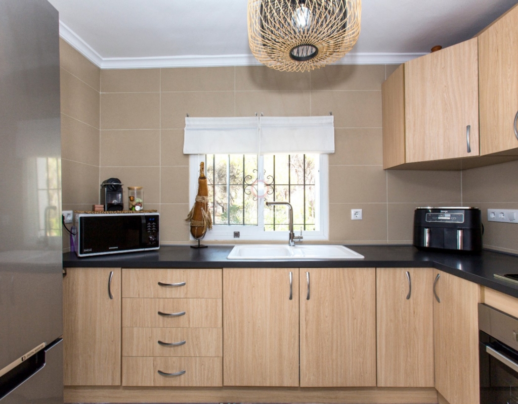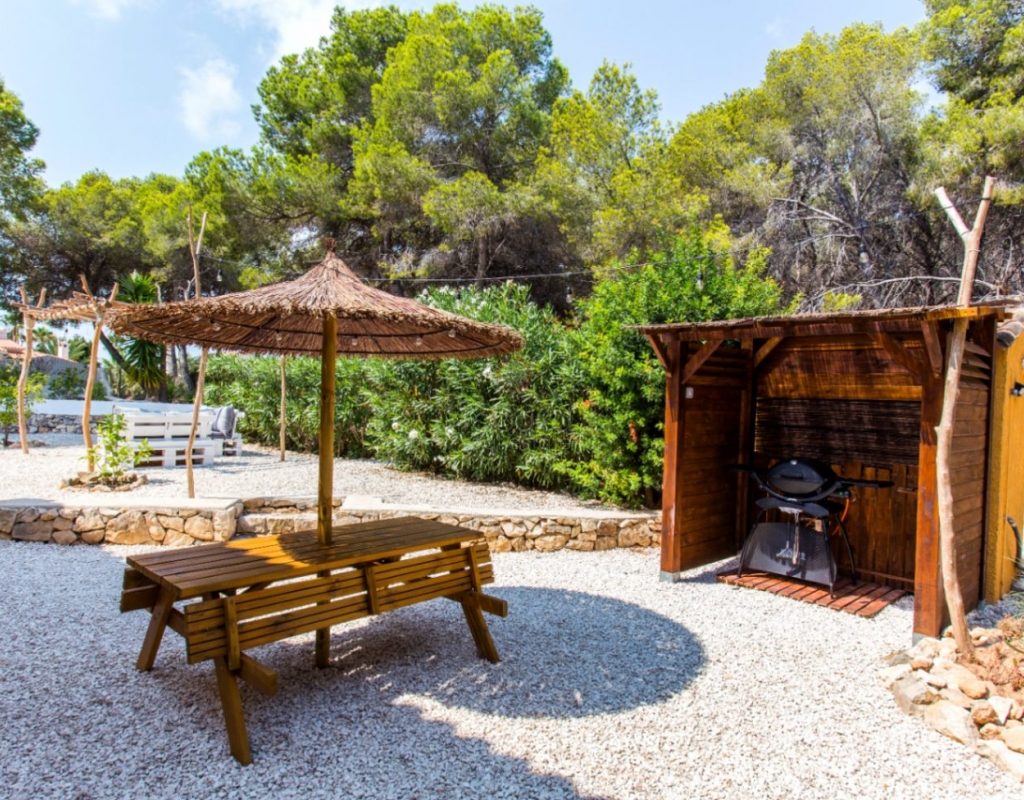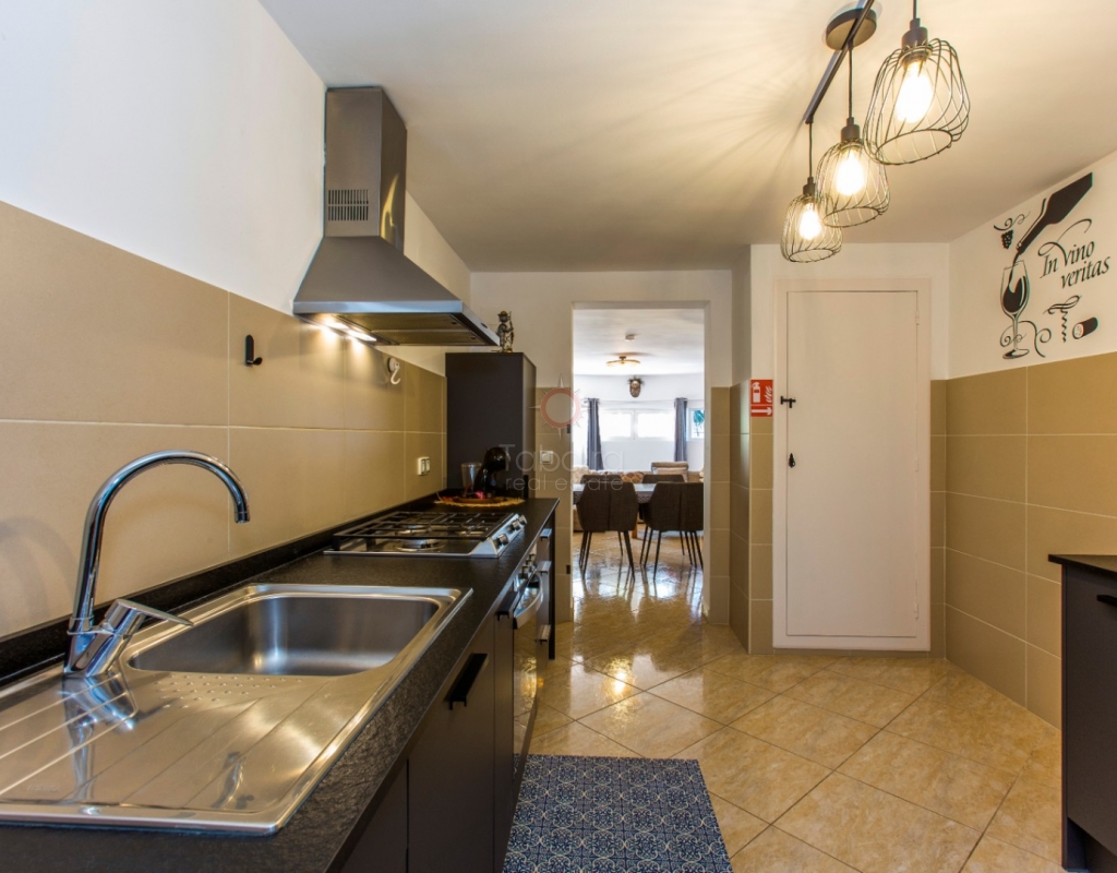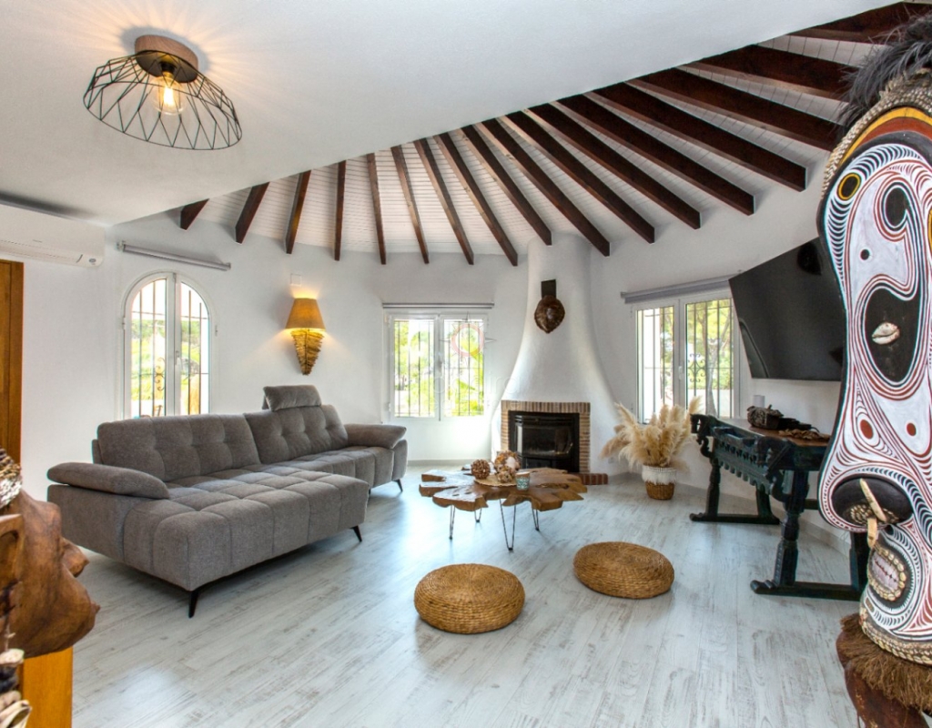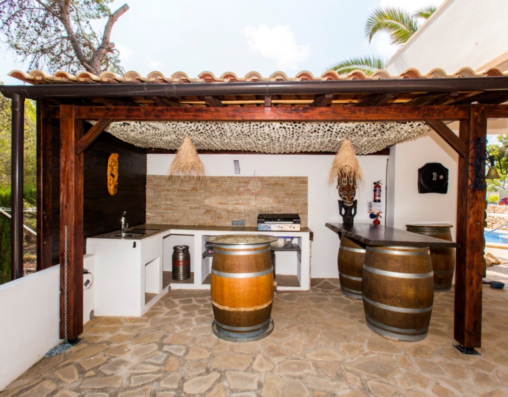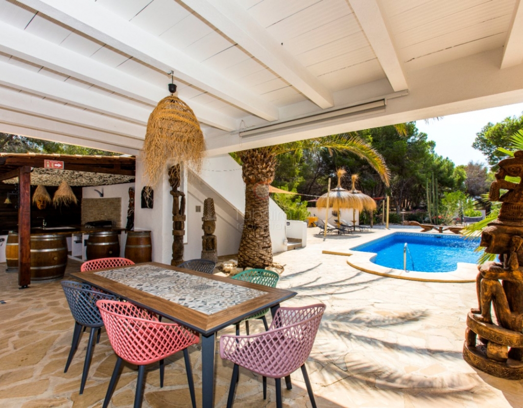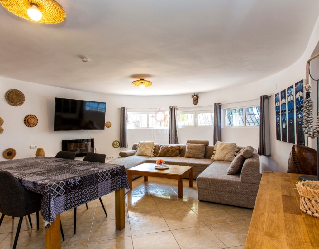 Detached villa with two separate apartments, that can be joined, for sale in Benissa, on a spacious plot, within walking distance of the sea In a quiet residential area, directly adjacent to a private forest with a lot of piece and quietness and with an open south-west facing position, this detached house is located just 700 meters from the Mediterranean Sea and bays. Ideally situated between Calpe and Moraira. The property was originally built in 1977, but was thoroughly renovated in 2022 and equipped with modern amenities. Description This property is spread over two floors, which are connected by an external staircases. The upper floor has a spacious living room with a fireplace, a dining room that opens onto a pleasant terrace area with seaviews, a fully equipped kitchen, two double bedrooms and a bathroom. On the ground floor, there is a living room with a dining area, a spacious fully equipped kitchen, two double bedrooms (one with a fireplace), a bathroom, a separate toilet and a laundry room with exit to the garden. Outside, the plot offers an 8x4 meter automatic salt water swimming pool with terrace, a jacuzzi, outdoor shower hot/cold, a summer kitchen with a 37m2 big covered terrace in front of the pool and several cosy seating and eating areas. There is a 20m2 big separate air conditioned room ideal for an office or small gym. The garden is green and low-maintenance, with fruit trees and other plants with beautiful night illumination. The property has a carport, parking space for several cars or mobile home and a spacious storage room. Special features Only 700 metres from the seaSouth-west facing with open views and seaviewsRenovated in 2022Air conditioning in all roomsDouble glazing, insect screens and roller shuttersFiber opticTourist licence (the ground floor is currently used for holiday rentals)Large flat plot with garden, fruit trees and seating areasWhy view this villa The location: quiet and in green surroundingsReady to move inSuitable for permanent residence and holiday rentalsIdeal for outdoor livingThe villa is an ideal combination of location, comfort and layout, ready for immediate use. Book a viewing with one of our staff today.