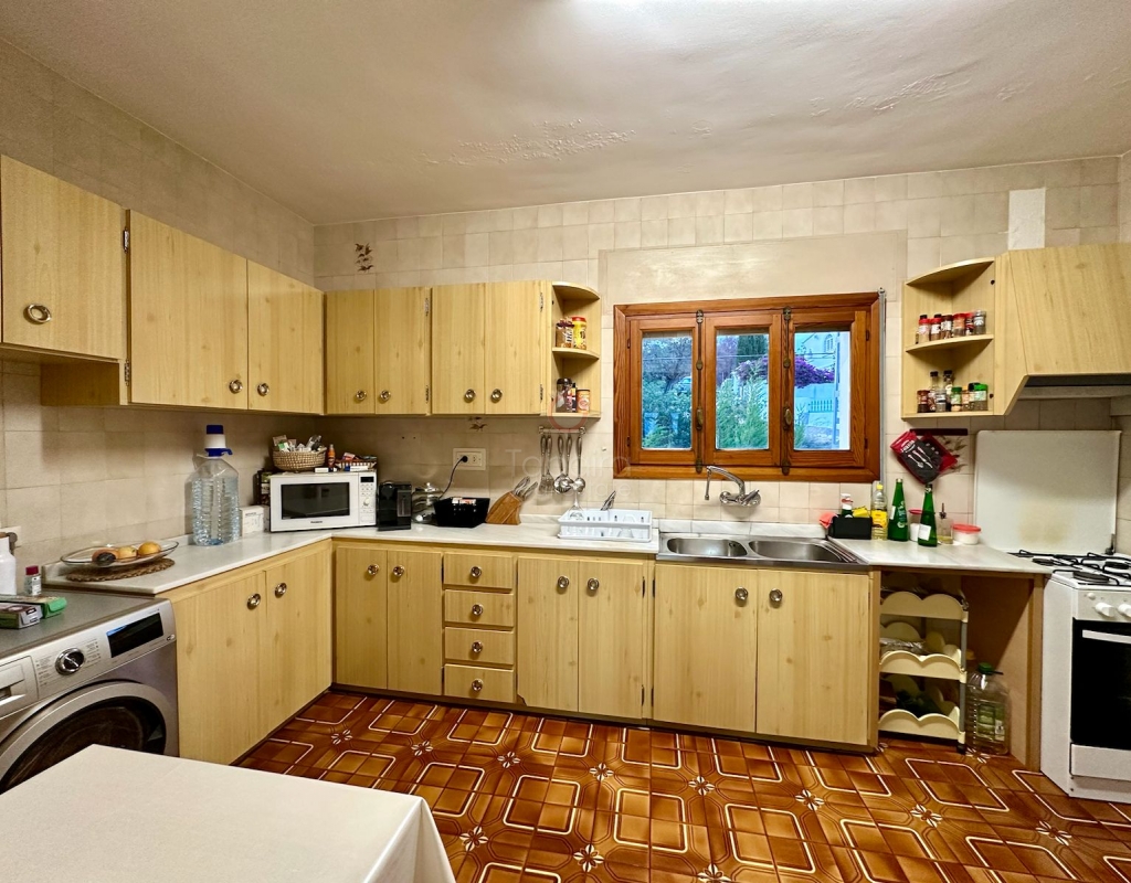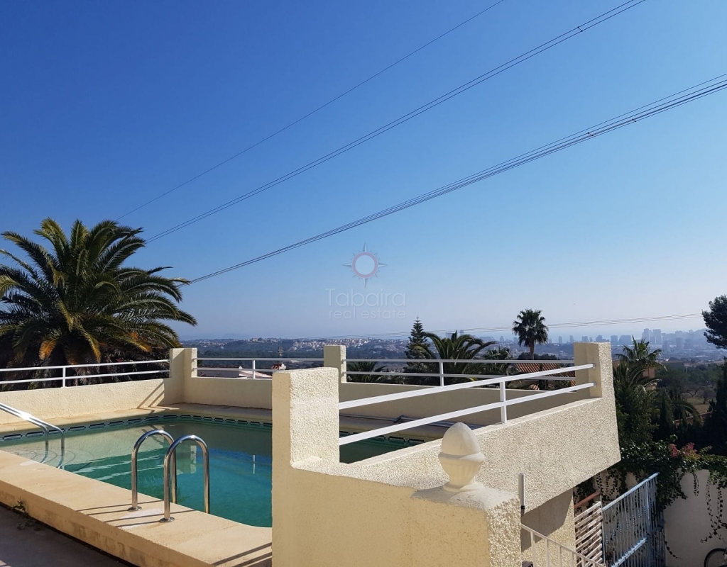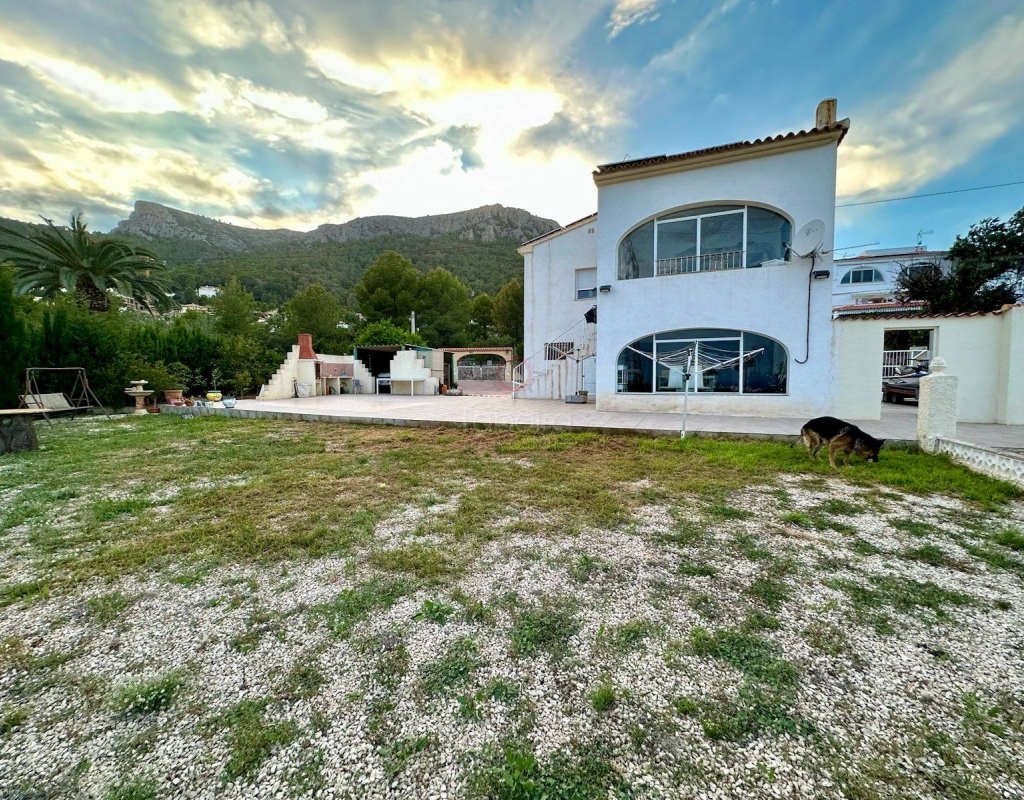 Villa for sale in Calpe with 2 independent homes, swimming pool and sea views This villa for sale in Calpe, Costa Blanca offers an excellent opportunity for those looking for a spacious home with investment potential and a comfortable layout for family use. Situated on a plot of approximately 1,480 m², the villa has two completely independent floors, each with its own entrance. Description The villa is spread over two floors. Ground floor: 2 bedrooms, bathroom, fully equipped kitchen with separate storage room, bright living room and an enclosed terrace that can be used all year round. Upper floor (access via external staircase): 2 bedrooms, bathroom, separate kitchen, living room and a glass terrace with panoramic views of the sea and mountains. The outdoor area consists of a private swimming pool with sun terrace, barbecue area, (covered) parking space and additional parking space on site. The location is south-east facing, which ensures plenty of sun. Special features Large, flat plot4 bedrooms and 2 bathroomsTwo completely independent living unitsPrivate swimming pool and spacious terracesSea and mountain viewsAir conditioning and roller shuttersStorage space and semi-furnishedWhy view this villa Two homes in one, ideal for rental or double occupancyQuiet but central location, close to beaches and town centreWithin walking distance of tram stop to Alicante, Altea and DeniaEasy access via the AP-7 motorway and close to Alicante airportThis villa offers space, flexibility and a good location. Lots of potential and plenty of opportunity to upgrade it to a contemporary sea view villa in Calpe. Interested? Book a viewing today and discover the possibilities for yourself.