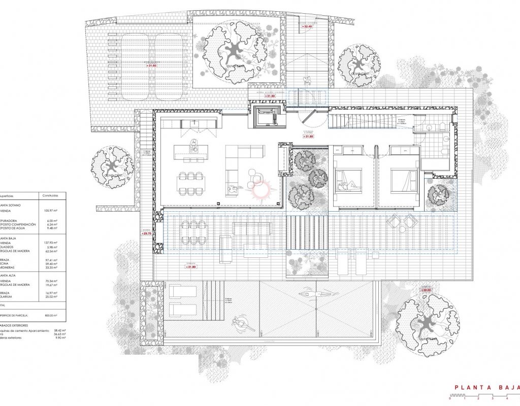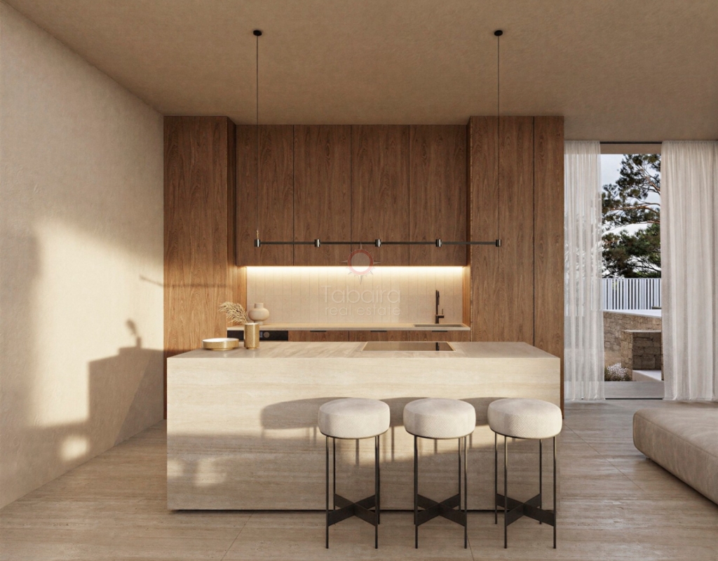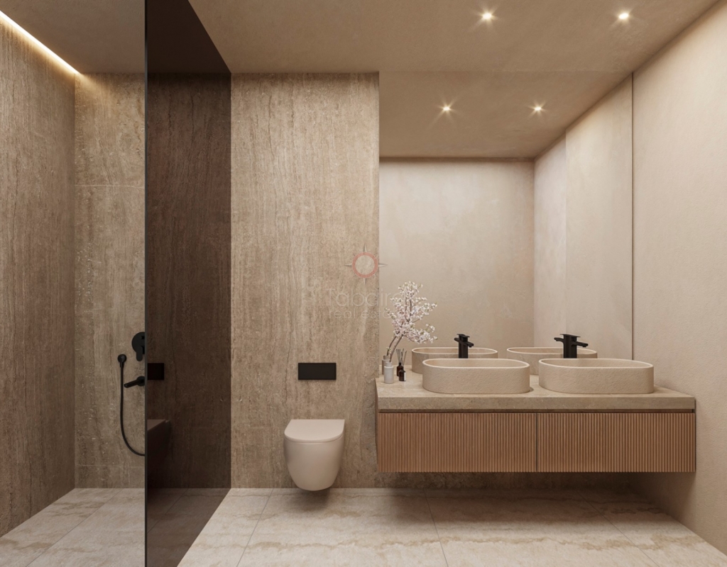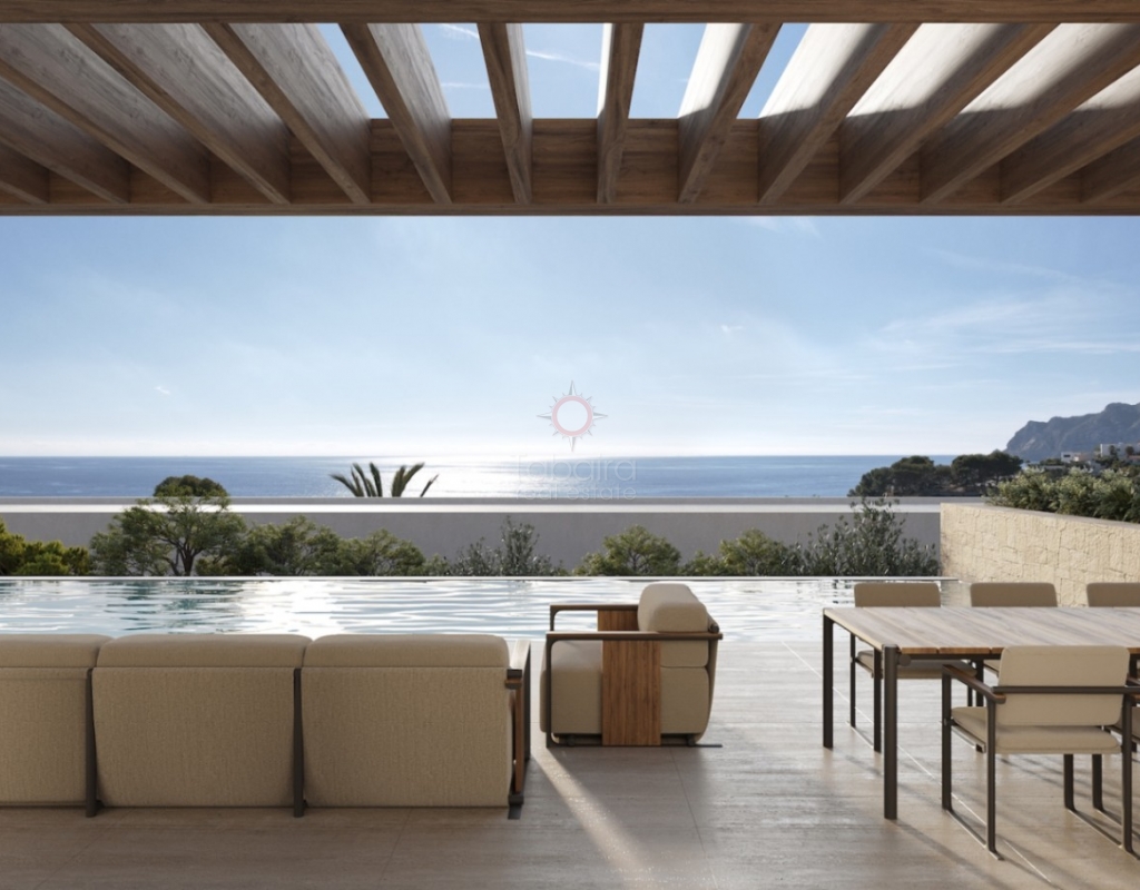 Modern villa for sale in La Fustera, Benissa Costa – new build with panoramic sea views, infinity pool, 4 bedrooms and high-quality finishes. Only 300 metres from the beach This modern villa with panoramic sea views is being built just 500 metres from La Fustera beach. An international supermarket, Playa La Fustera, the Eco-path and various restaurants are within walking distance. In less than 10 minutes by car, you can reach the centre of Calpe. A contemporary villa that combines natural materials, refined design and comfort in a central location. Description The villa is spread over three floors. Large windows provide plenty of light and a seamless connection between indoor and outdoor spaces. On the ground floor, there is an open-plan living-dining room with a modern, fully equipped kitchen, two bedrooms, a bathroom and a guest toilet. From the spacious terraces and the infinity pool, you can enjoy the panoramic sea views. The upper floor is entirely dedicated to the master suite with walk-in wardrobe, bathroom and large private terrace. There is also an additional room that can be used as a bedroom or office. The roof terrace features a solarium with panoramic views. The basement has a gym, guest apartment, laundry room, technical installations and additional storage rooms. Details 4 bedrooms, 3 bathrooms and guest toiletPanoramic sea viewsWalking distance (5 minutes) to the beachElectric shutters in the bedroomsAlarm ParkingVarious terracesLarge swimming pool (almost 60 m²)Gym, guest accommodation and elevatorUnderfloor heating and air conditioningSouth-east orientationWhy view this villa Panoramic sea viewsCentral locationWalking distance to restaurants and beachHigh-quality finishEnergy efficientRenowned builderA Mediterranean villa for sale in Benissa with a luxurious feel in an excellent location. Would you like to know more about this new project on the Benissa coast? Contact our office and we will be happy to help you.
