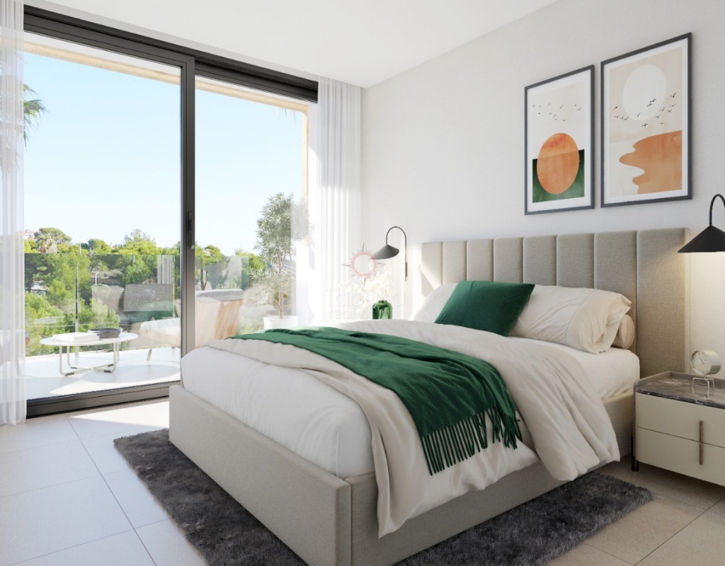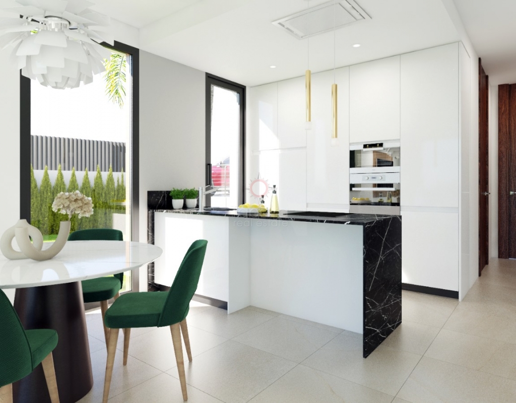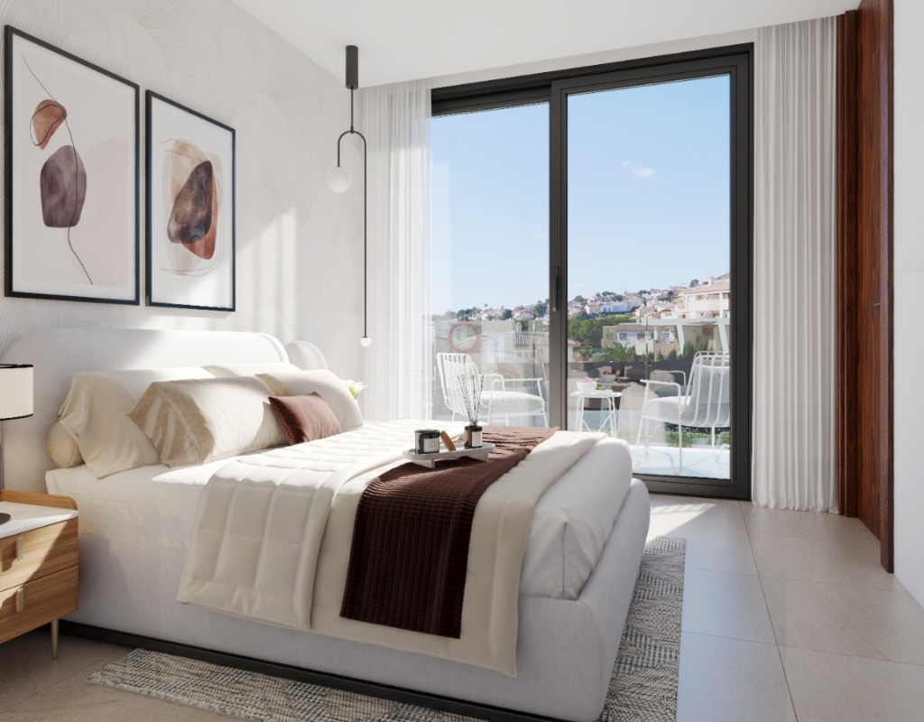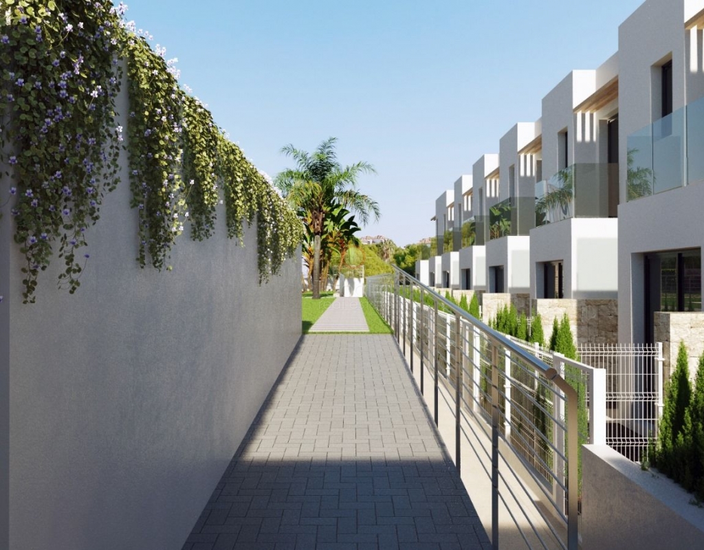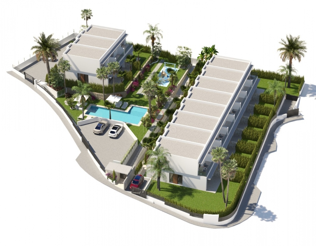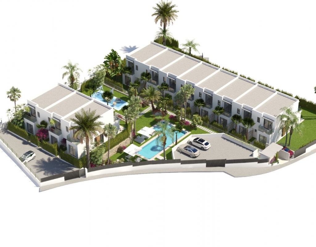 New build villa Finestrat for sale with sea views.Townhouses in Sierra Cortina with 3 bedrooms, home automation, swimming pool and low energy costs. Ideal for living or investing on the Costa Blanca. In the hills of Sierra Cortina, Finestrat, a new residential project is being realised with modern townhouses with sea views towards Benidorm. In this first phase, 11 semi-detached villas will be built. Description The new build villas are designed with a bioclimatic concept and focused on low energy consumption. Large windows provide plenty of natural light and connect the interior with the terraces and garden. On the ground floor, there is a living-dining room, an open kitchen with Bosch appliances or equivalent, a bedroom and a bathroom. An internal staircase leads to the upper floor with two bedrooms, each with an en-suite bathroom and a private terrace. The homes are built with high-quality materials and are equipped with home automation, electric shutters in the bedrooms, a security door and preparation for air conditioning via ducts. Outside, each home has a landscaped garden with grass, trees and a sprinkler system. The complex also offers a communal swimming pool and a children's play area. Details New build in Sierra Cortina, FinestratSea views towards Benidorm3 bedrooms, 3 bathroomsBioclimatic designPreparation for air conditioningCommunal poolCompletion in approximately 24 monthsStarting priceWhy view this villa Affordable modern livingExcellent qualityLow energy costsCentral locationThese villas for sale in Finestrat, Costa Blanca are an affordable option for those looking for a modern new build home. Please contact our office for more information and the current status regarding availability and prices.