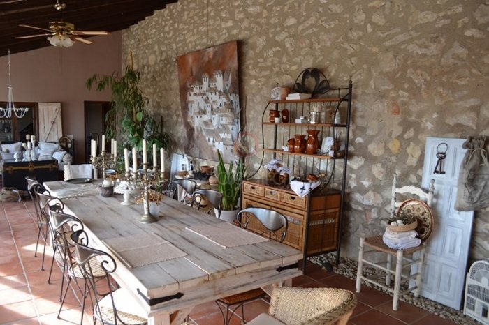 The property has been beautifully restored keeping many original features. On the ground level there is lounge with fireplace, very large dining room, 1st master bedroom with a gallery, kitchen, utility room, bathroom and the 5th bedroom/office area which has a small private courtyard terrace. All rooms on the ground level open to the front garden and pool area.