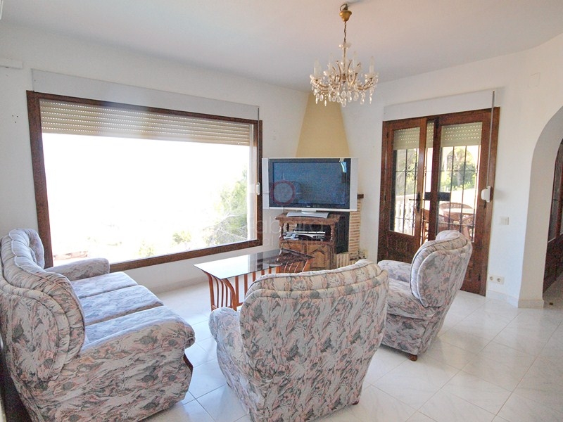 Villa i till salu i Moraira i zon Benimeit med fantastisk panoramautsikt över havet. Fastigheten har fyra sovrum, två badrum, ett duschrum, två vardagsrum och två kök, separerade i två lägenheter med verandor, terrasser och pool.